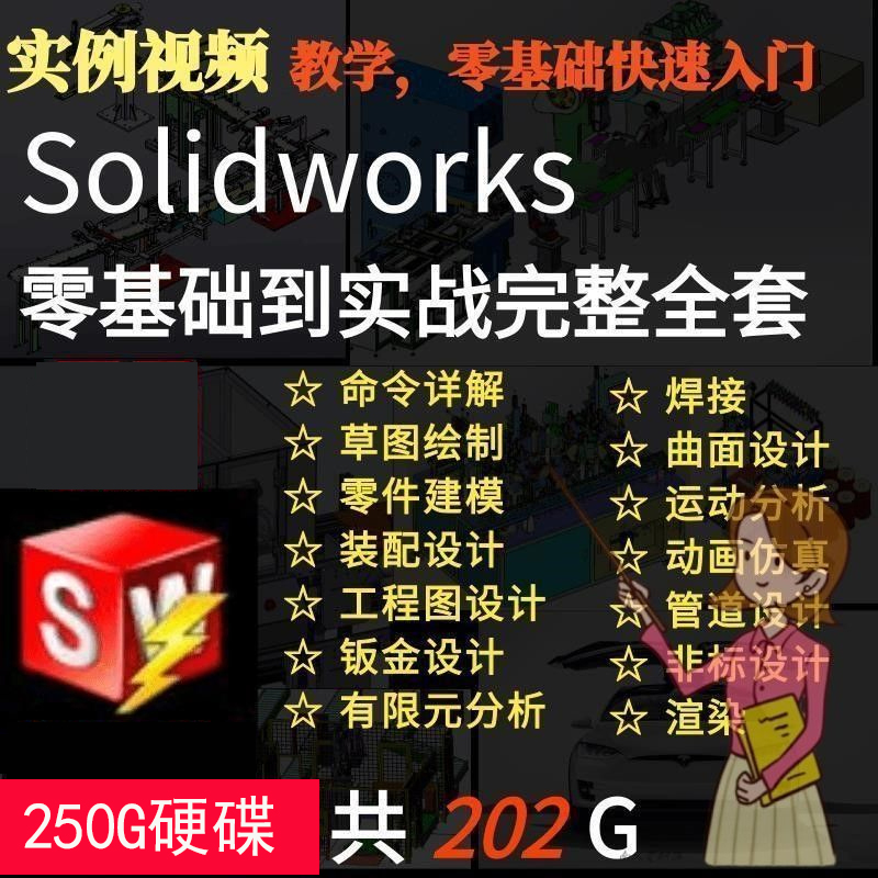 • SolidWorks全套影片教學 零基礎自學 從入門到精通 指令詳解 草圖繪製 零件建模 組裝設計 工程圖設計 鈑金設計 有限元素分析 焊接 曲面設計 運動分析 動畫模擬 管路設計等(250G硬碟出貨 無需下載 即插即看 手機電腦都能永久觀看) NT$2190 詳情