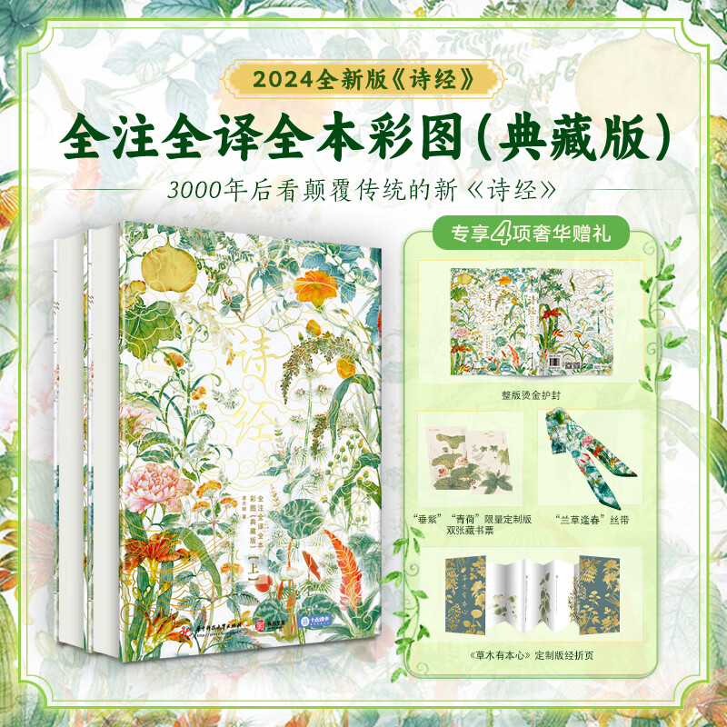 《詩經 》 全註全譯全本彩圖典藏版(上下2冊 )精裝16開本 隨書附贈3項好禮