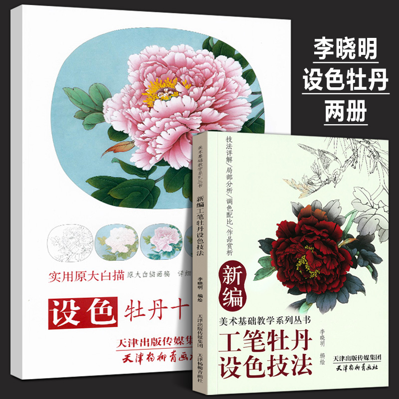 【8開本】工筆牡丹設色技法+設色牡丹十二名品 實用原大白描(共2冊)