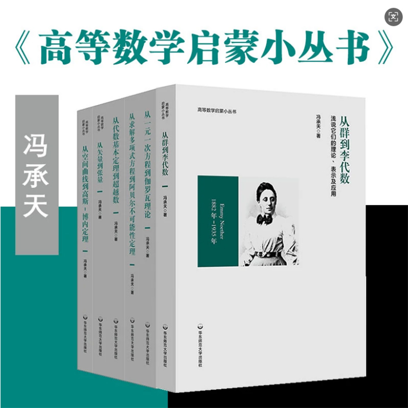 • 馮承天 原創數學拓展普及類從系列(全套6冊)高等數學啟蒙小叢書 從解多項式方程式到阿貝爾不可能性定理 從群到李代數定理到超越數 NT$2690 詳情