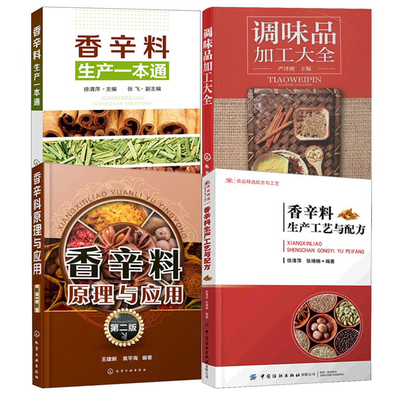 (共4本)香辛料原理與應用 +調味品加工大全+香辛料生產一本通+香辛料生產工藝與配方 食用合成香料 調味品 香精醬汁醬料製作大全