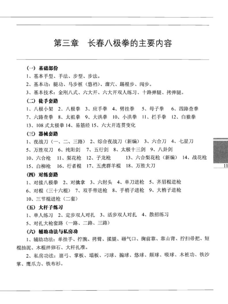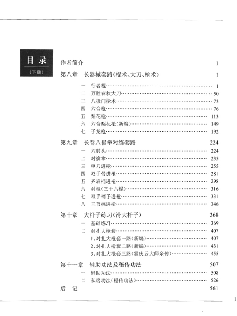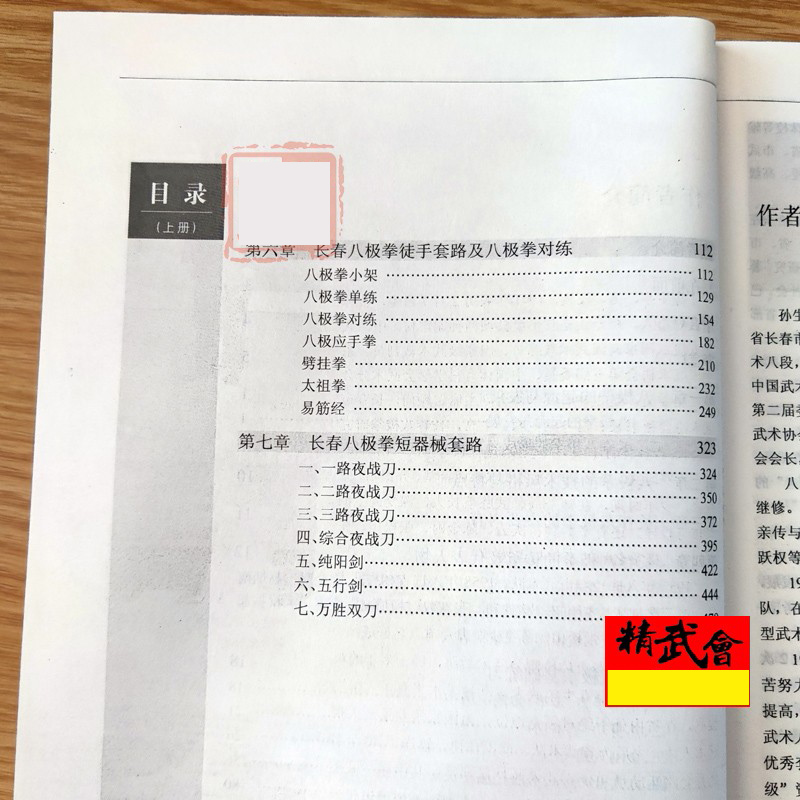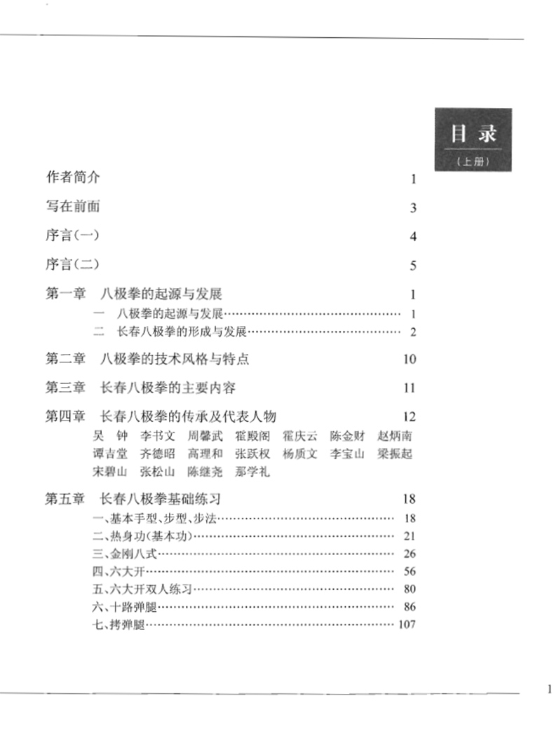 《長春八極拳全集》分上、下兩冊,一百四十四萬餘字,名人題字、詞13幅,名人及先輩照片畫像22幅,文稿照片1幅,作者及相關人員照片46幅,大、小套路65路,有拳術、長短器械、對接、對功法等,動作照片8278張短。