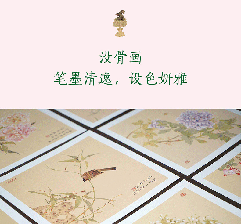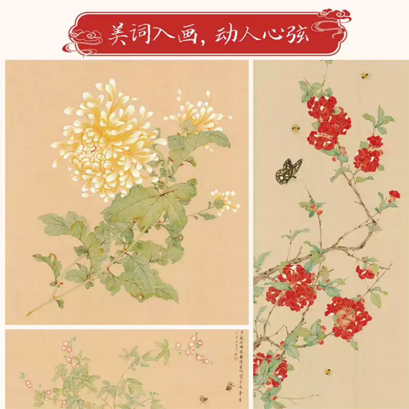 本書以《花間集》的詞作為主題,引出杏花、荷花、竹子、菊花、桂花、蝴蝶等 20 餘種常見動植物,透過詞與動植物的巧妙結合來展現沒骨畫的意境與趣味,並詳細介紹了沒骨畫的創作過程。