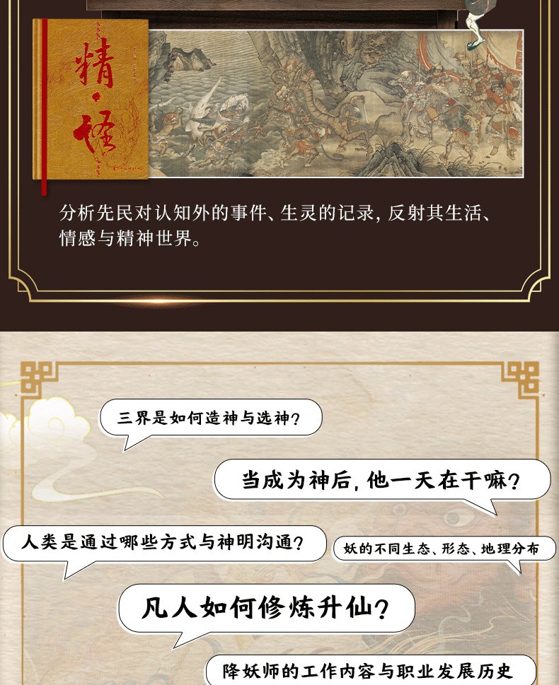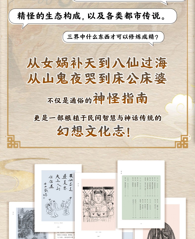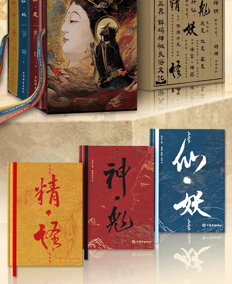 中國民間奇幻全書是一套全景式展現中國傳統奇幻文化的讀本,涵蓋「神·鬼」「仙·妖」「精·怪」三卷,由多位民俗與文學研究者共同撰寫。本書以深入淺出的方式梳理了數百則流傳千禧年的神祇、鬼魅、仙人、妖獸、精靈與怪物的故事與形象,追溯其文化根源,揭示其像徵意義與演變軌跡。從女媧補天到八仙過海,從山鬼夜哭到床公床婆,這些奇幻存在既體現了古人對自然、生命與宇宙的敬畏與想像,也折射出中華民族深邃的哲思與美學。本套書不僅是通俗的神怪指南,更是一部根植於民間智慧與神話傳統的幻想文化志,為當代讀者打開一扇窺見傳統奇幻世界的瑰麗之門。