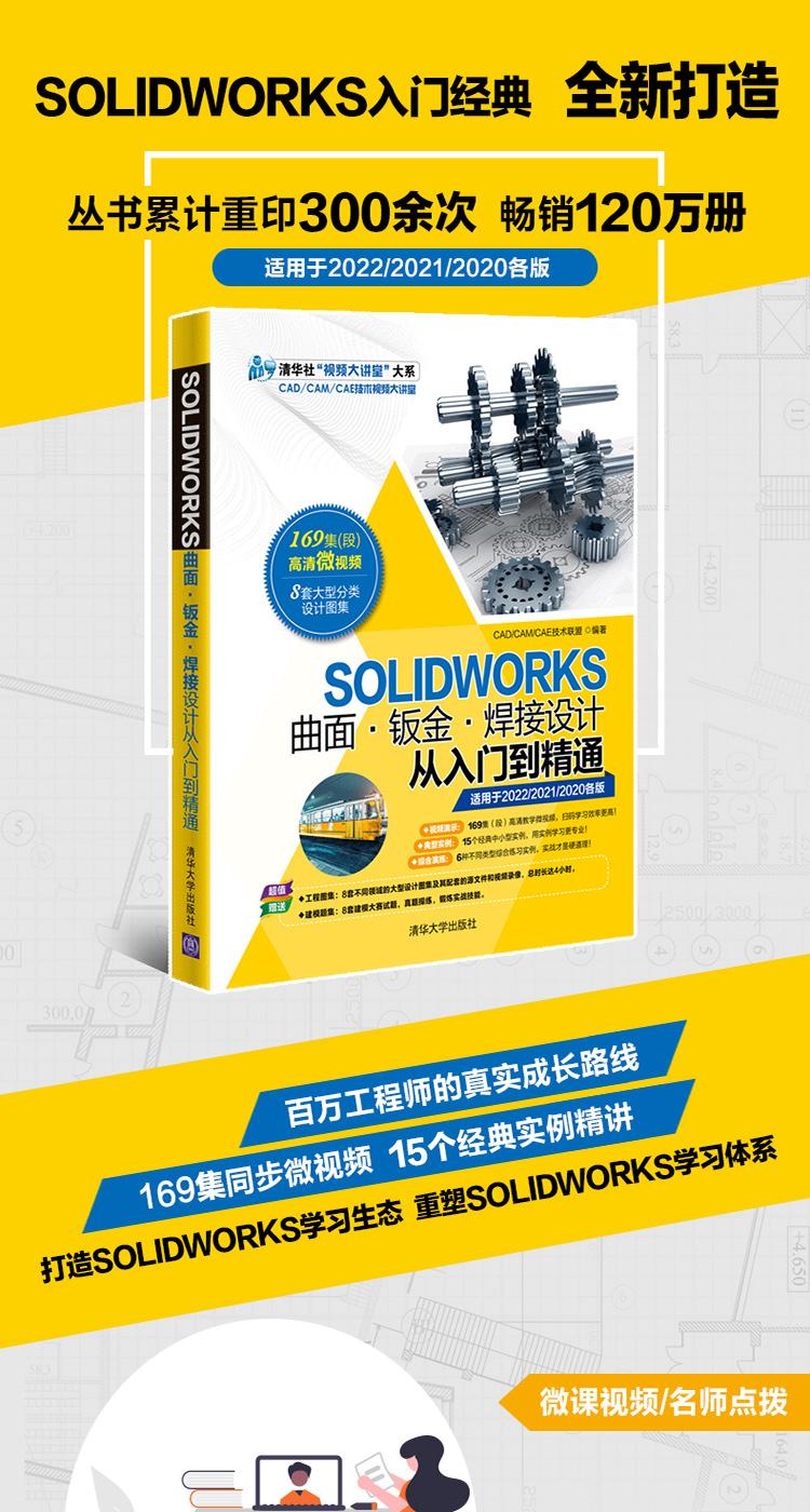 "【掃描封底「文泉雲盤」二維碼獲取配套資源】 【適用於SOLIDWORKS 2022/2021/2020等版本】 針對SOLIDWORKS 曲面·鈑金·焊接設計方向編寫,內容豐富!視頻演示:169集(段)高清教學微視頻,掃碼學習效率更高!典型實例:15個經典中小型實例,用實例學習更專業!綜合演練:6種不同類型綜合實例演練,實戰才是硬道理!工程圖集:8套不同領域的大型設計圖集及其配套的源文件和視頻錄像,總時長近4小時。建模題集:8套建模大賽試題,真題操練,鍛煉實戰技能。 ......