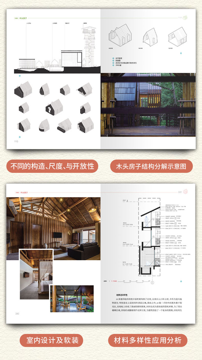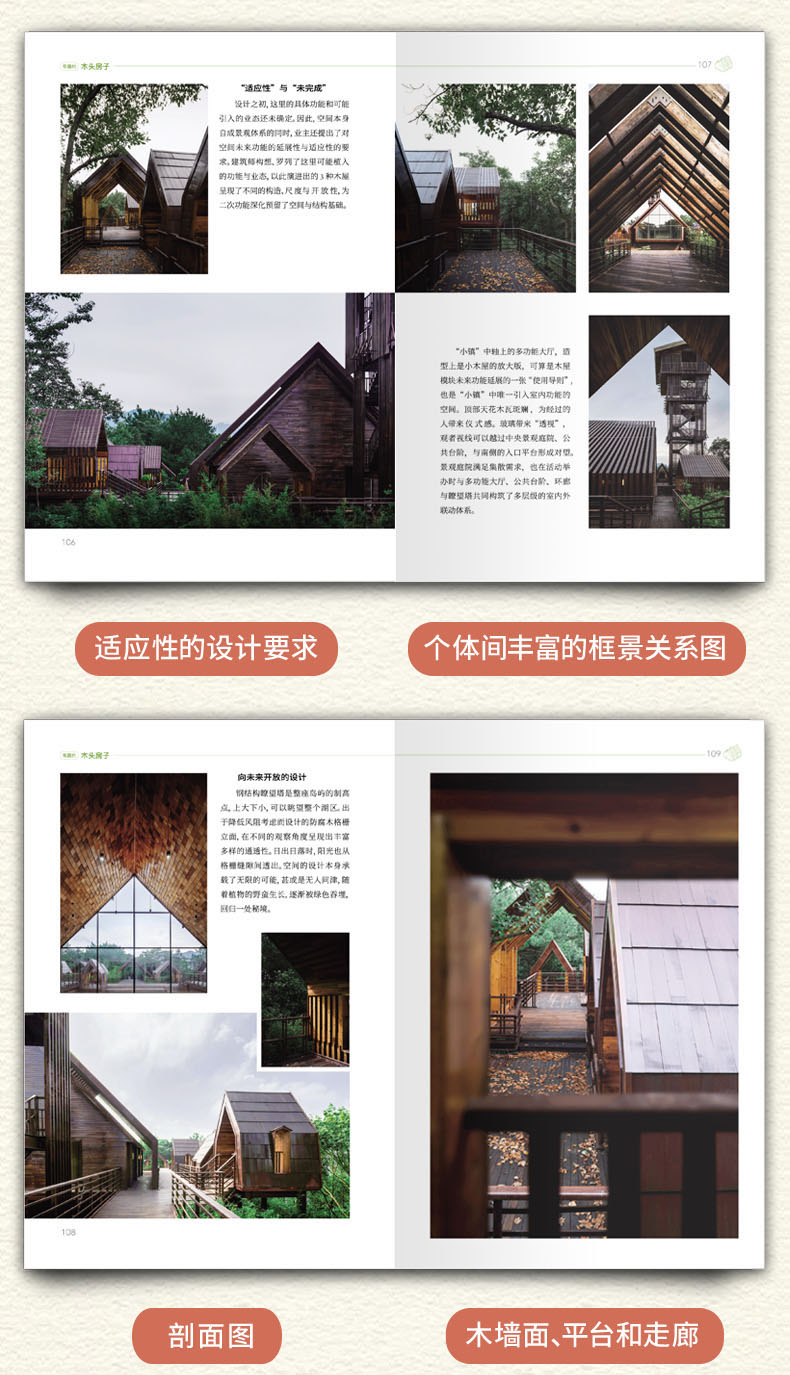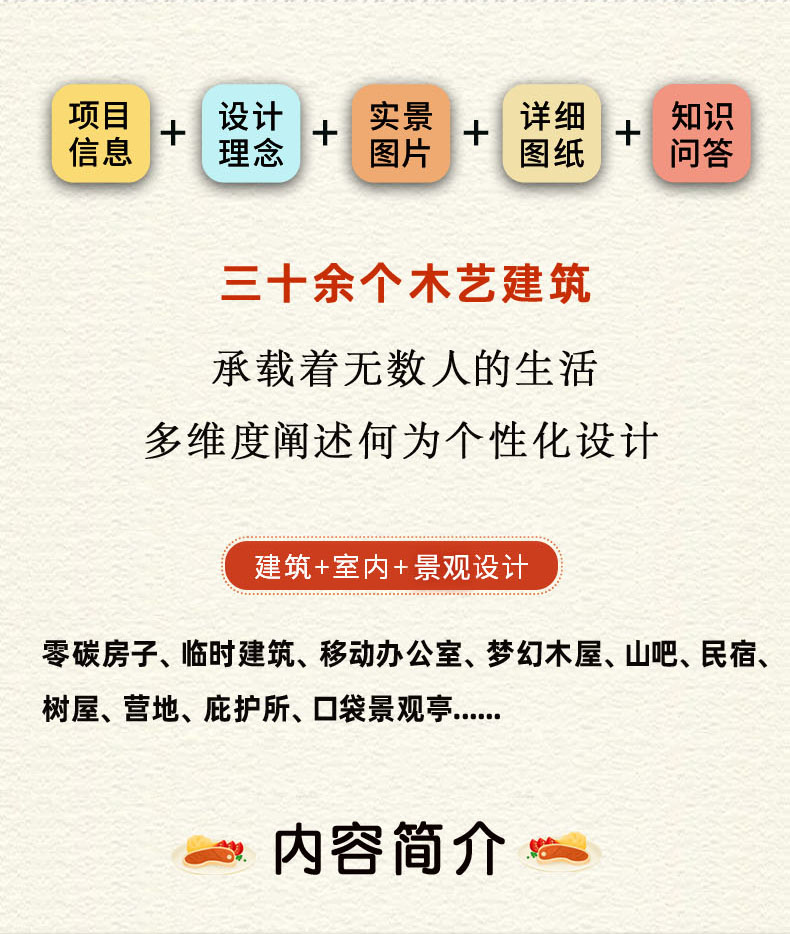 1. 本書深度剖析外具有創意的木藝景觀設計,從概念、造型、施工圖的多方位展示。