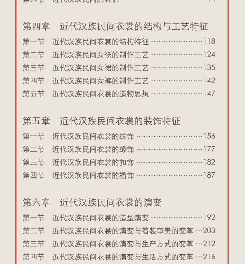 本書以江南大學傳習館藏品為基礎,對中國歷代漢族服裝的襟邊緣飾做了詳細深入的梳理與研究,包括如服飾文化、形制、色彩、圖案、工藝以及在現代服裝上的應用等方面,對於研究中國歷代服裝有較強的指導意義。
