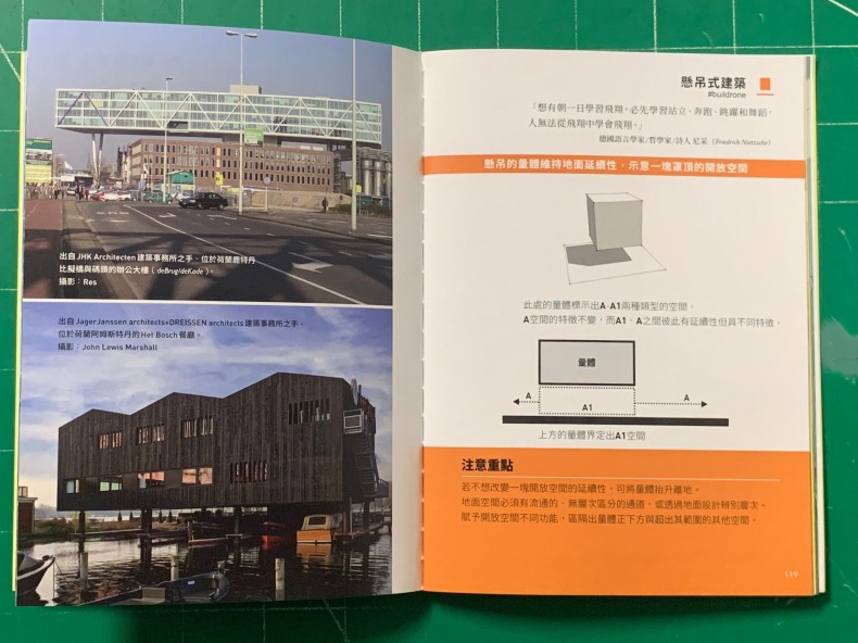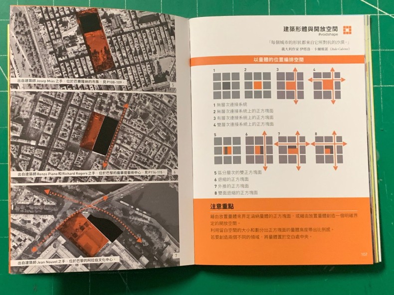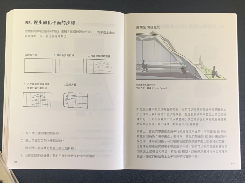 全書藉由圖示與實體縮小模型逐步解說當代空間構成的方法如折疊平面或結合曲線的設計。每一章開頭都以世界公認現存的知名建築為例做解說,讓讀者更清楚了解應用方式與成果。