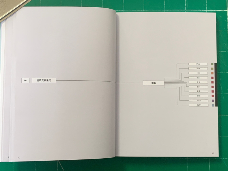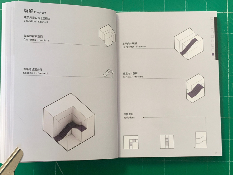 書中舉例說明的「空間操作」術語,在於發現以空間操作為第一步設計項目,能讓學生將他們的概念想法和「日常觀察」轉化為他們新的建築空間語言。於建築計畫之前的設計思維,導入空間的用途定義。藉由帶入一個作業術語,學生能針對「容積關係」、「親近性」、「鄰接感」和「體驗因素層面」展開研究,而不受對於原先空間先入為主的概念所拖累。隨著設計過程,賦予建造不同建築類型及參與的建築規劃作業。當建築序列開始呈現於抽象的空間作業時,細節也紮根落實於更迷人和有趣的結構中。