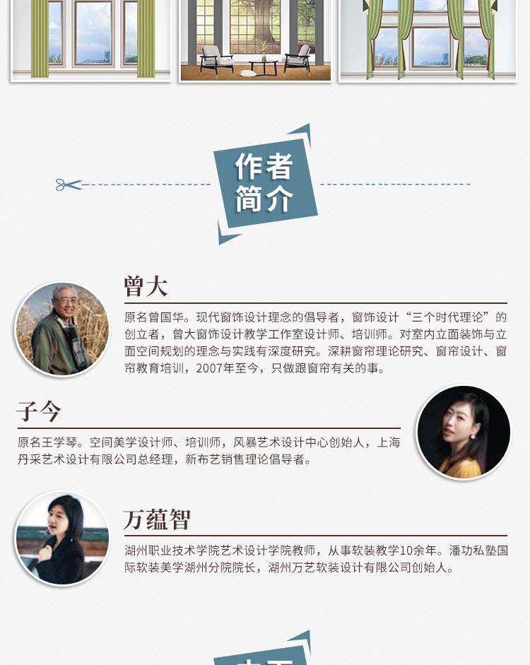 凱瑟琳•S.斯托爾,十多年來一直關注著室內設計的潮流趨勢,她不僅是《時尚窗飾》雜誌的前任主編,而且目前也是類似出版物《褶形布簾和窗簾》雜誌的特約自由撰稿人。她曾撰寫過許多圖書,包括《夢幻地板》、《夢幻之窗》和《家庭裝潢創意全集》。
