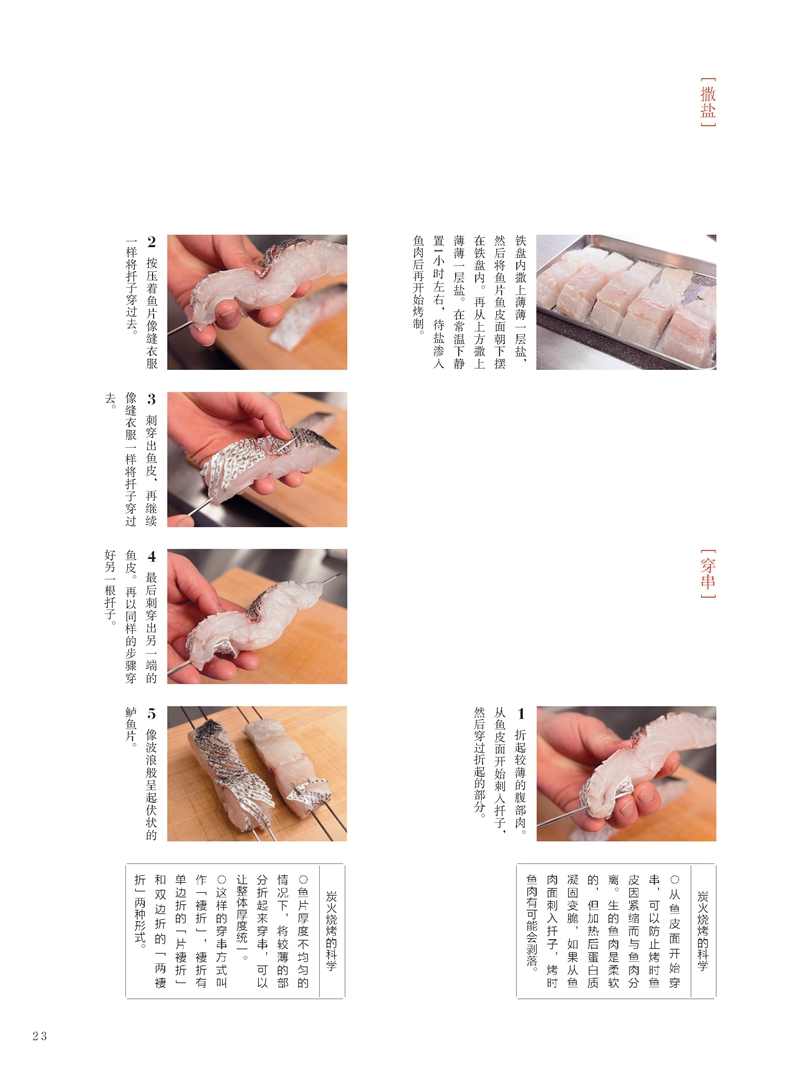 囊括海鮮、肉類和蔬菜等的50道日式烤物,均以一步一圖的形式詳細講解食材的準備與處理、穿串的形式及技巧、炭火火力的調控、烤醬的製作與刷塗、烤物熟度的判斷及掌控等炭火燒烤的關鍵技術,同時還設有燒烤流程的重點概要和火力大小的數字提示,使新手也能輕鬆學會“如何做”。