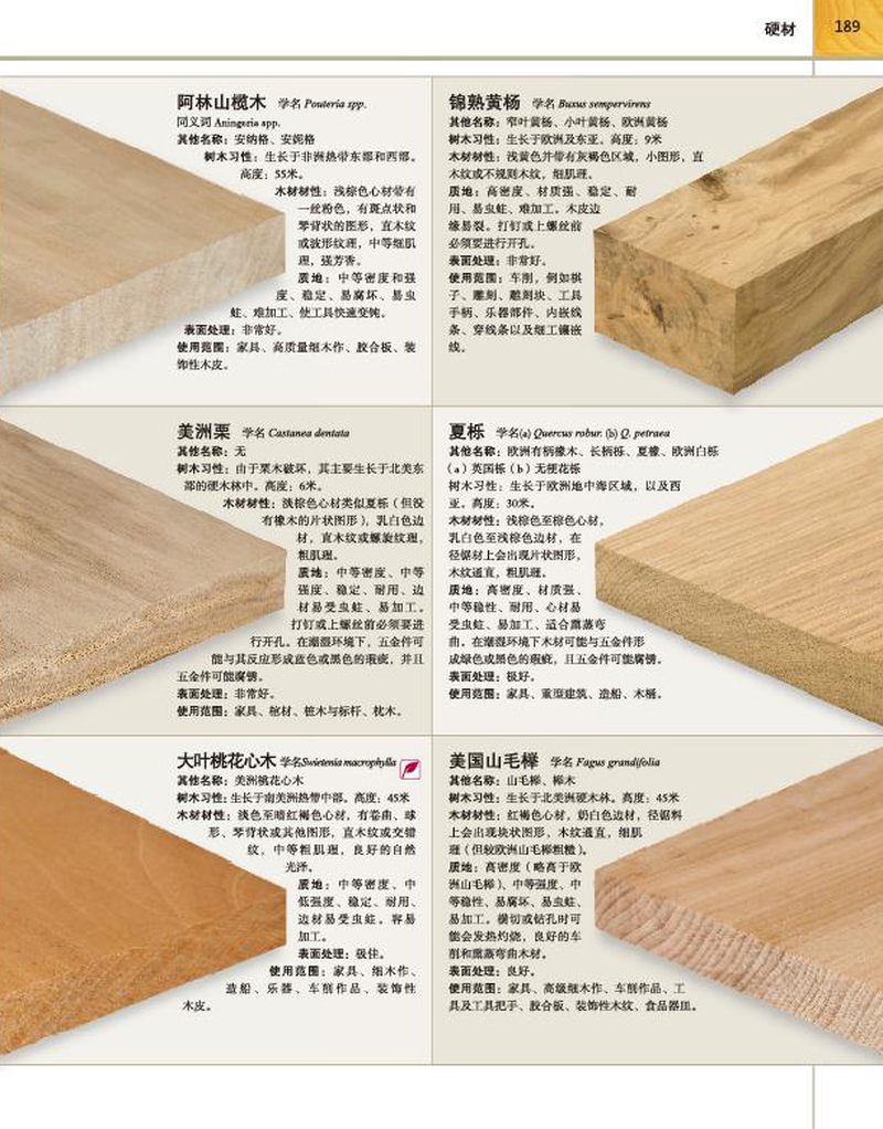 木材 以顏色排序,介紹100多種可用木材及其使用性能