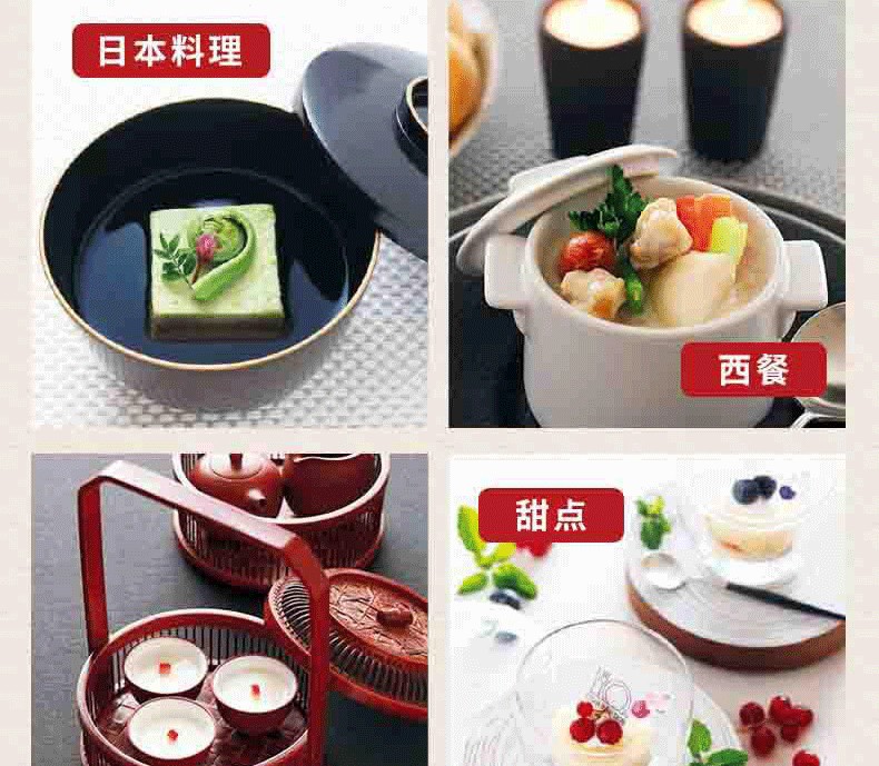 100餘種日本料理、西餐、中餐、甜點擺盤創意,依據種類分類,方便查找