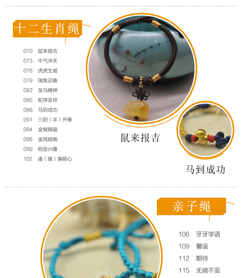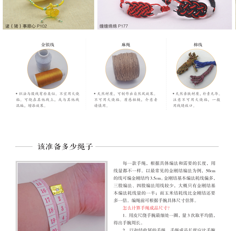 27種繩結基本編法+43款時尚手繩案例+64款拓展手繩案例;每個基本編法、手繩案例都有配套視頻,掃二維碼看視頻;全彩圖解,一步一圖,一看就懂,一學就會。
