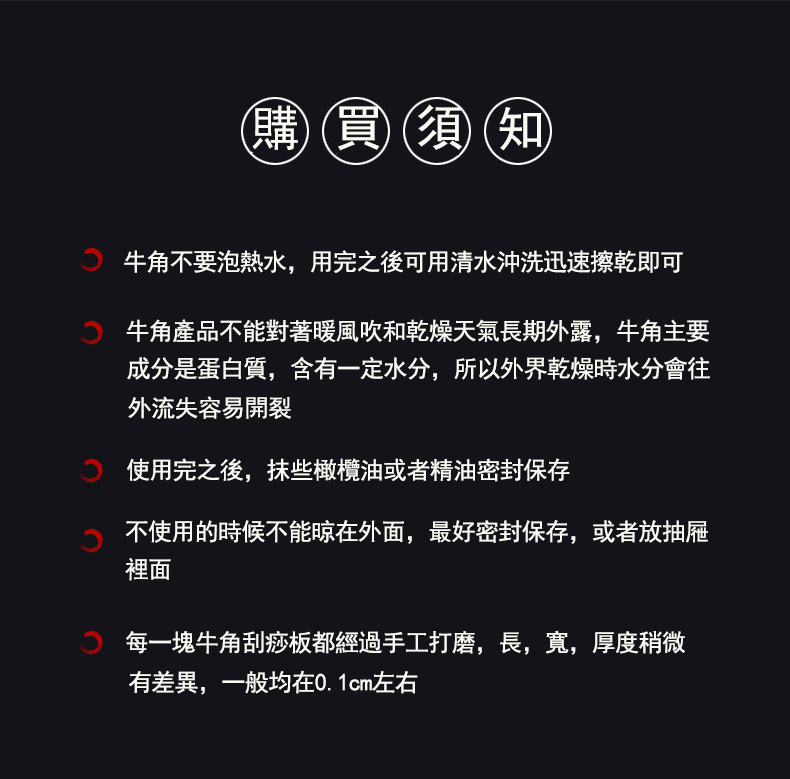 天然白水牛角刮痧板 面部刮痧板 撥筋棒 全身通用刮臉板 眼部專用撥筋棒套餐選擇*白牛角刮痧板(厚度6mm)NT$1198白牛角撥筋棒(厚度7mm)NT$998白牛角刮痧板+白牛角撥筋棒 NT$1398訂購數量*-+訂單價格*0.00+0.00(運費)=NT$1198支付方式*貨到付款7-11取貨全家取貨月010203040506070809101112年202620272028202920302031203220332034203520362037注: 我們會宅配送貨到您府上,請您注意查收。姓名*行動電話*選擇地區*請選擇請選擇請選擇請選擇詳細地址*電子郵箱*留言備註*