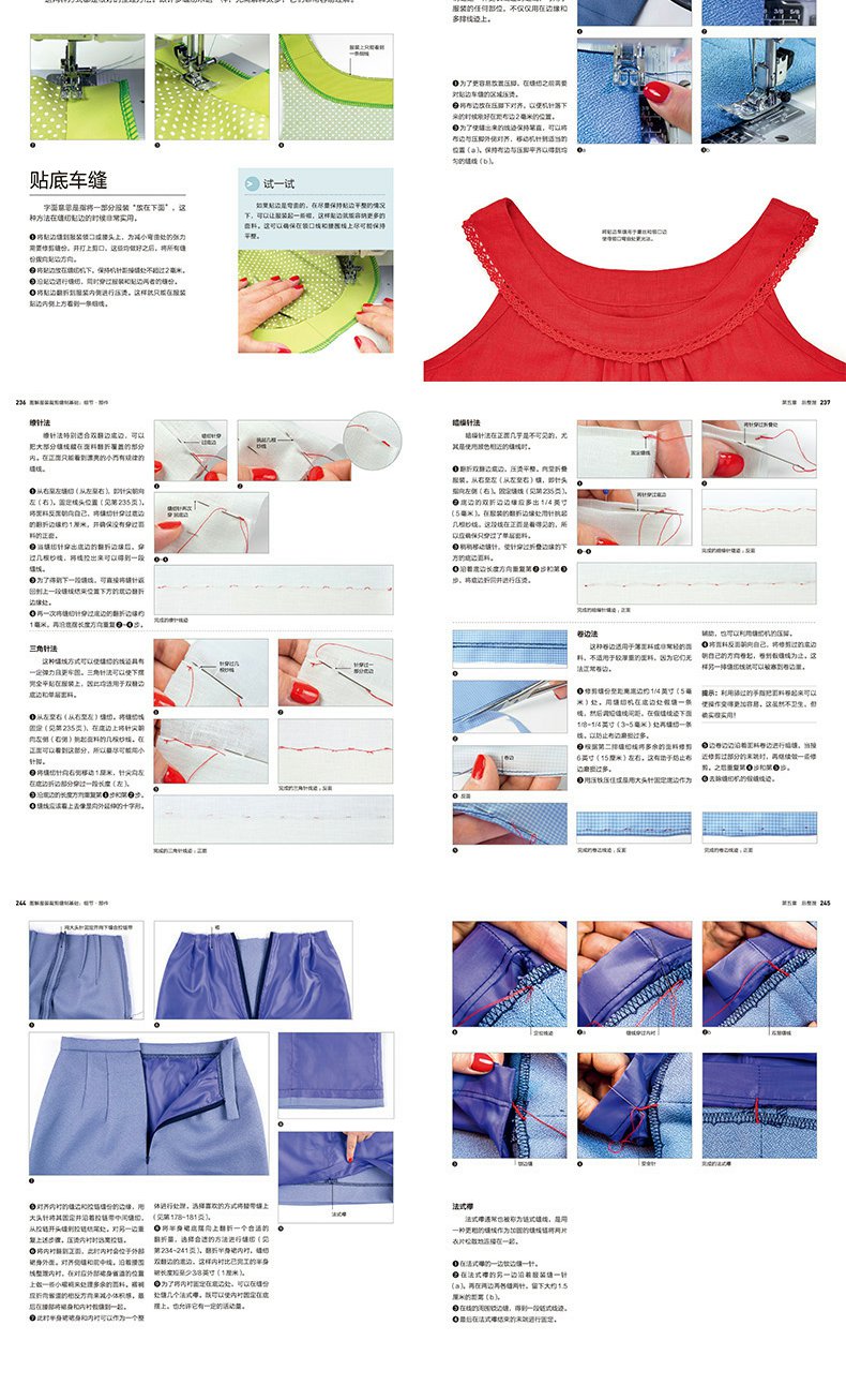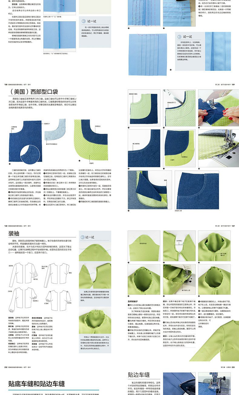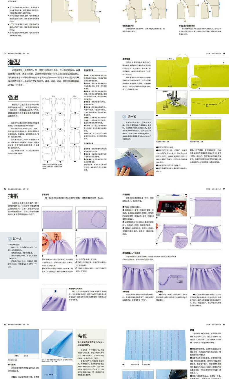 不同的針法、縫份和效果,包括高級工藝;