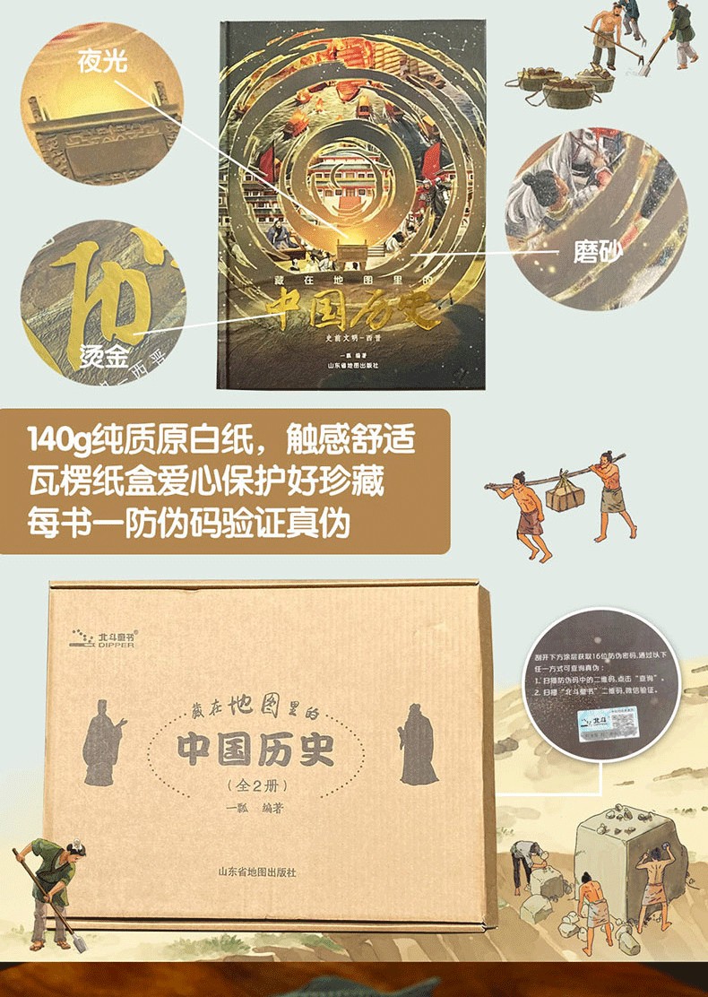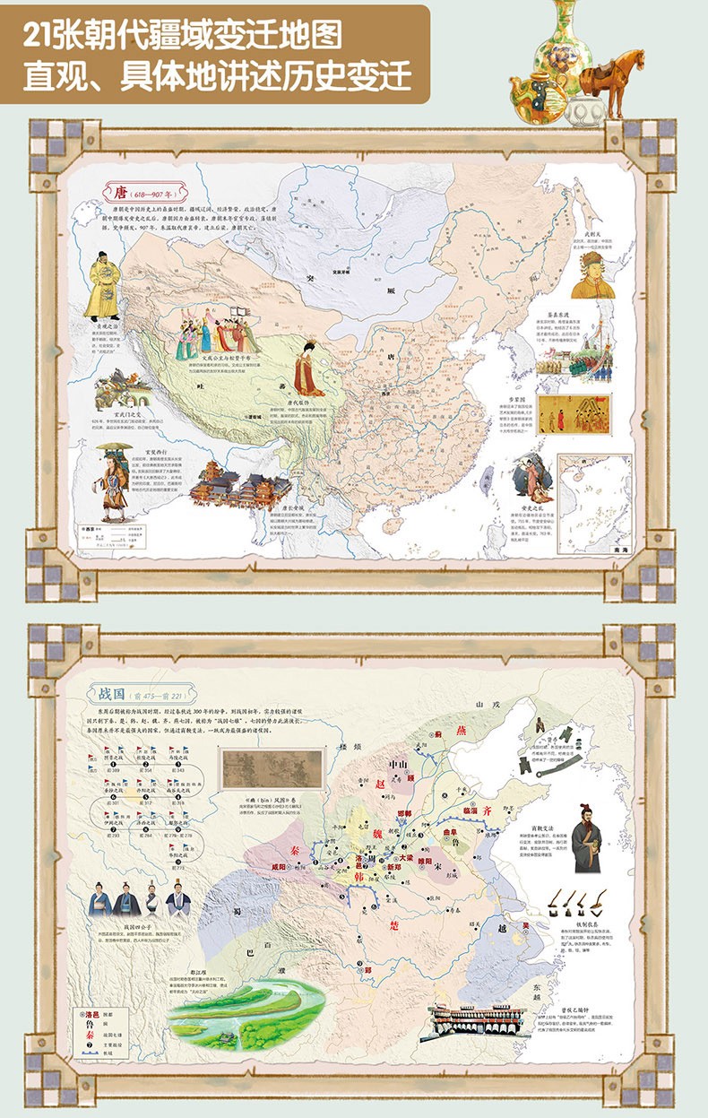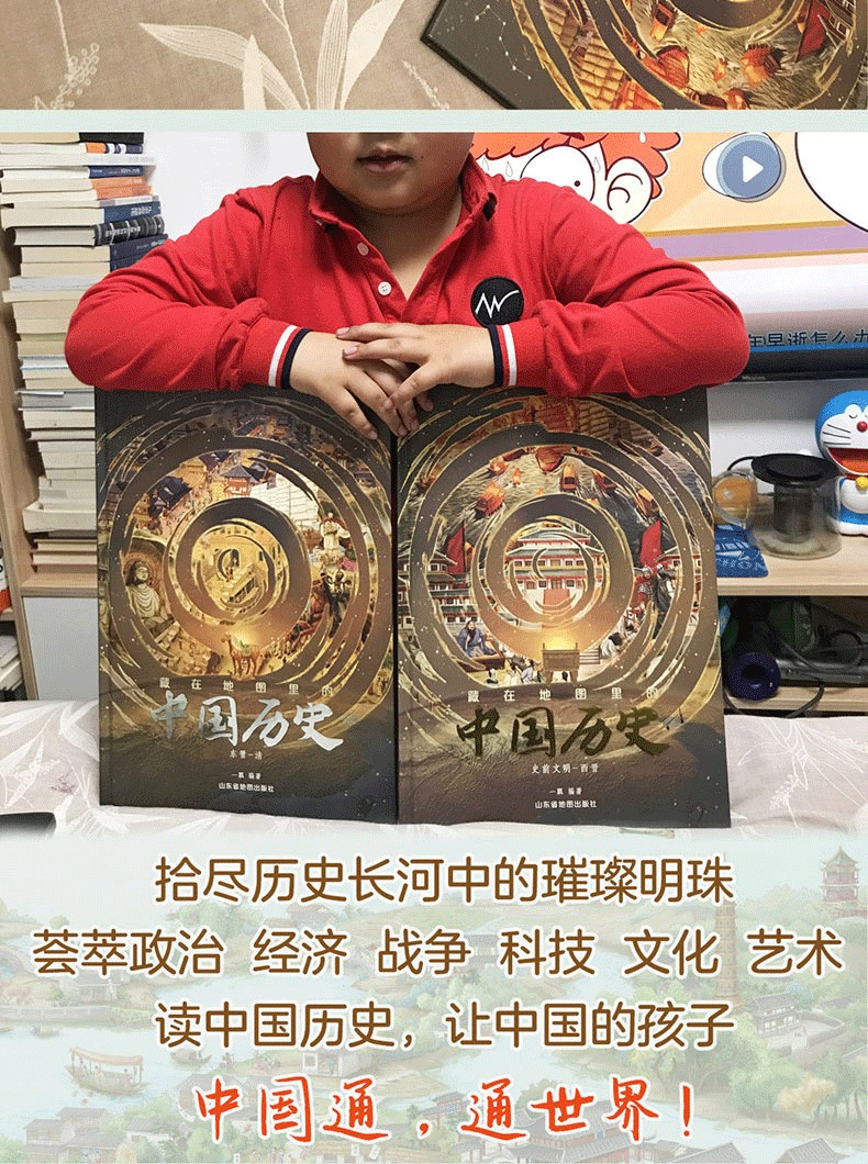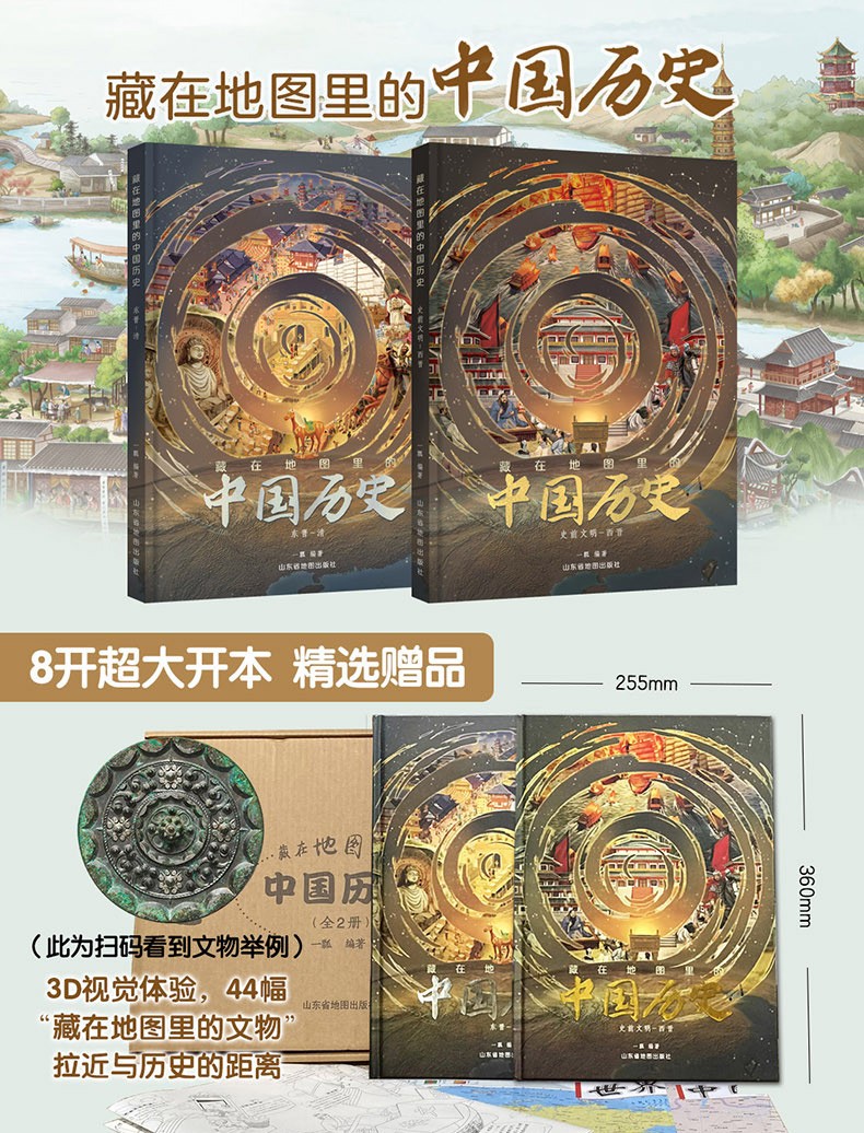 藏在地圖裡的中國歷史2冊 全彩精裝硬殼繪本 8開超大本 送兒童醒獅燈籠一對