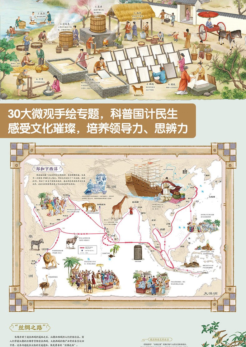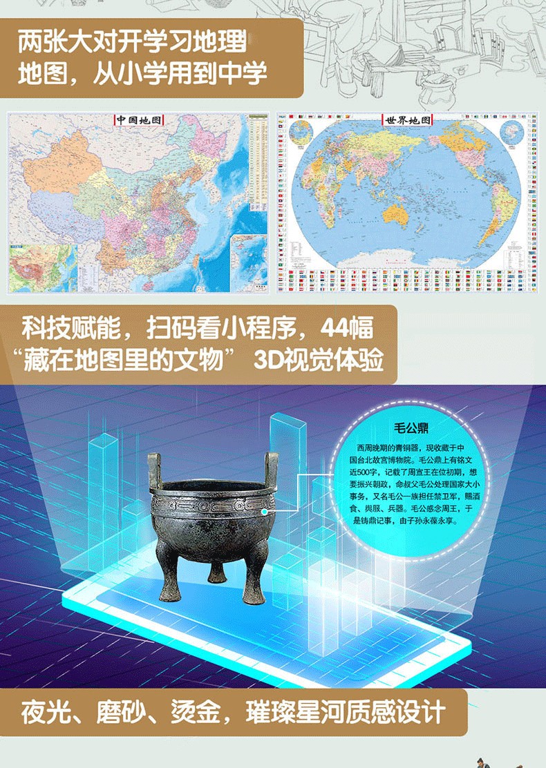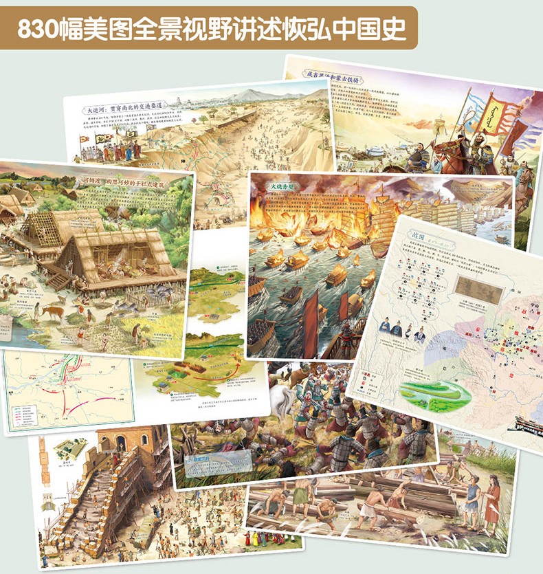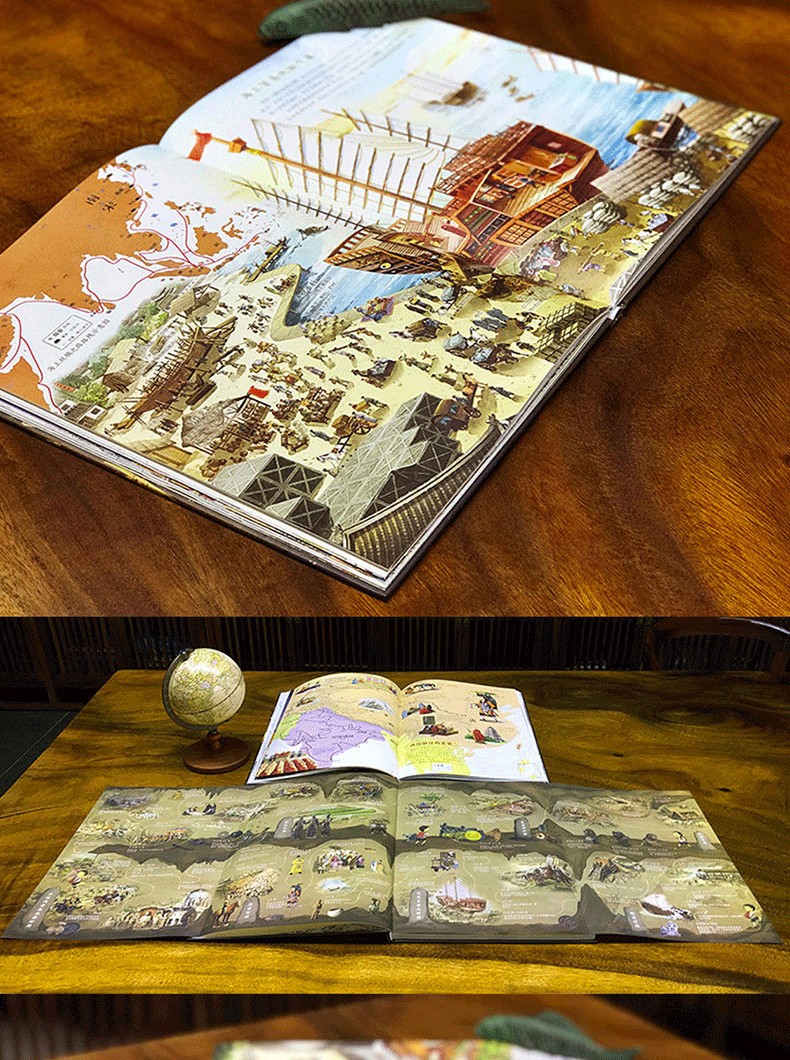 藏在地圖裡的中國歷史2冊 全彩精裝硬殼繪本 8開超大本 送兒童醒獅燈籠一對