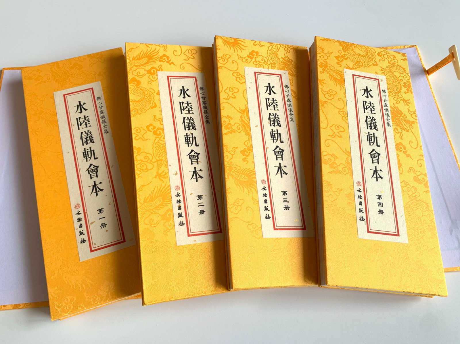 水陸儀軌会本 大折本(全四冊)綢緞面 豎排大字