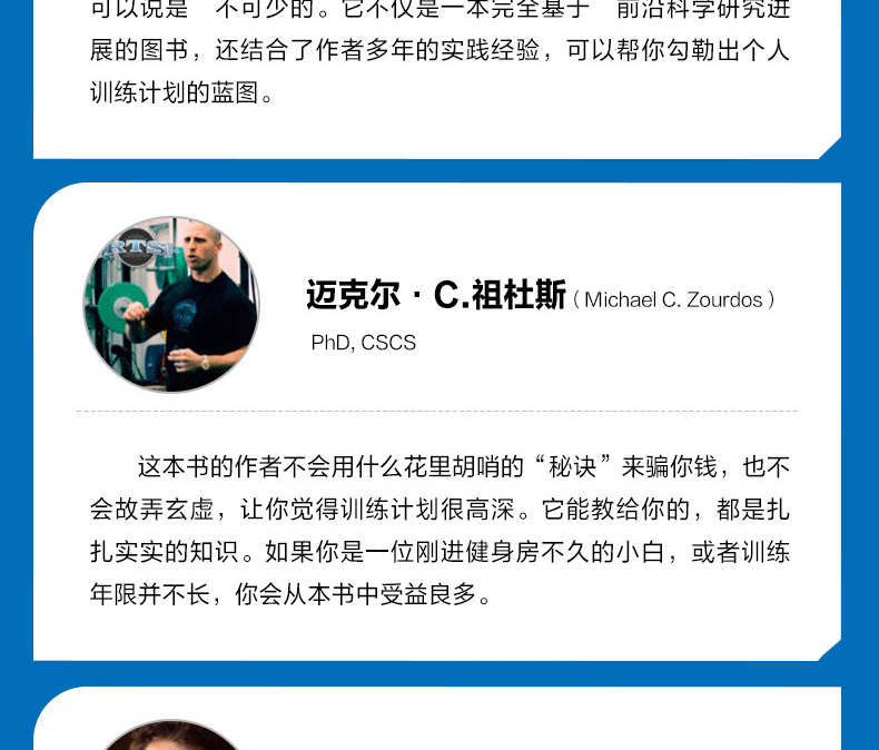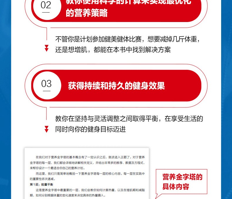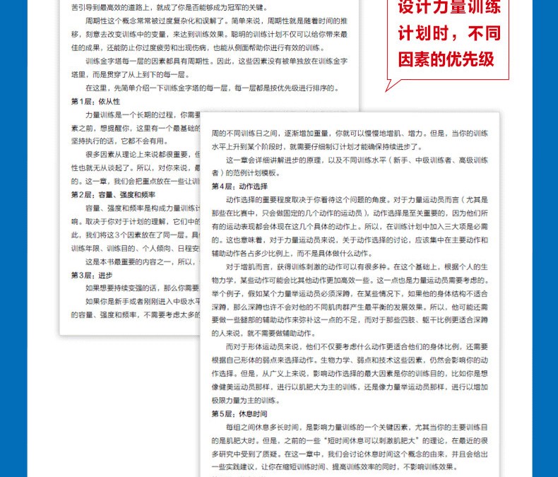 肌肉與力量全書 通過構建“金字塔”的概念為讀者詳細地闡述了肌肉與力量訓練中訓練和營養的概念及方法,旨在利用科學的理論幫助讀者建立起基礎的訓練概念框架,並逐步形成系統的訓練體系,從而實現自己的訓練目標。全書分為訓練篇、營養篇和備賽與生活篇,從健身的基礎理論和對訓練中各種因素分析的“訓練金字塔”,到如何安排飲食和營養計劃的“營養金字塔”,再到形體和力量比賽的備賽策略,涵蓋了健身的方方面面。此外,本書的另一大特點是作者用通俗易懂的語言來論述深奧的理論知識,為非專業人士學習相關理論提供了便利。因此,不論您是健身愛好者、健身教練,還是專業的備賽指導教練,通過閱讀本書,都將會在相關的知識儲備和訓練實踐方面獲得 的進步。