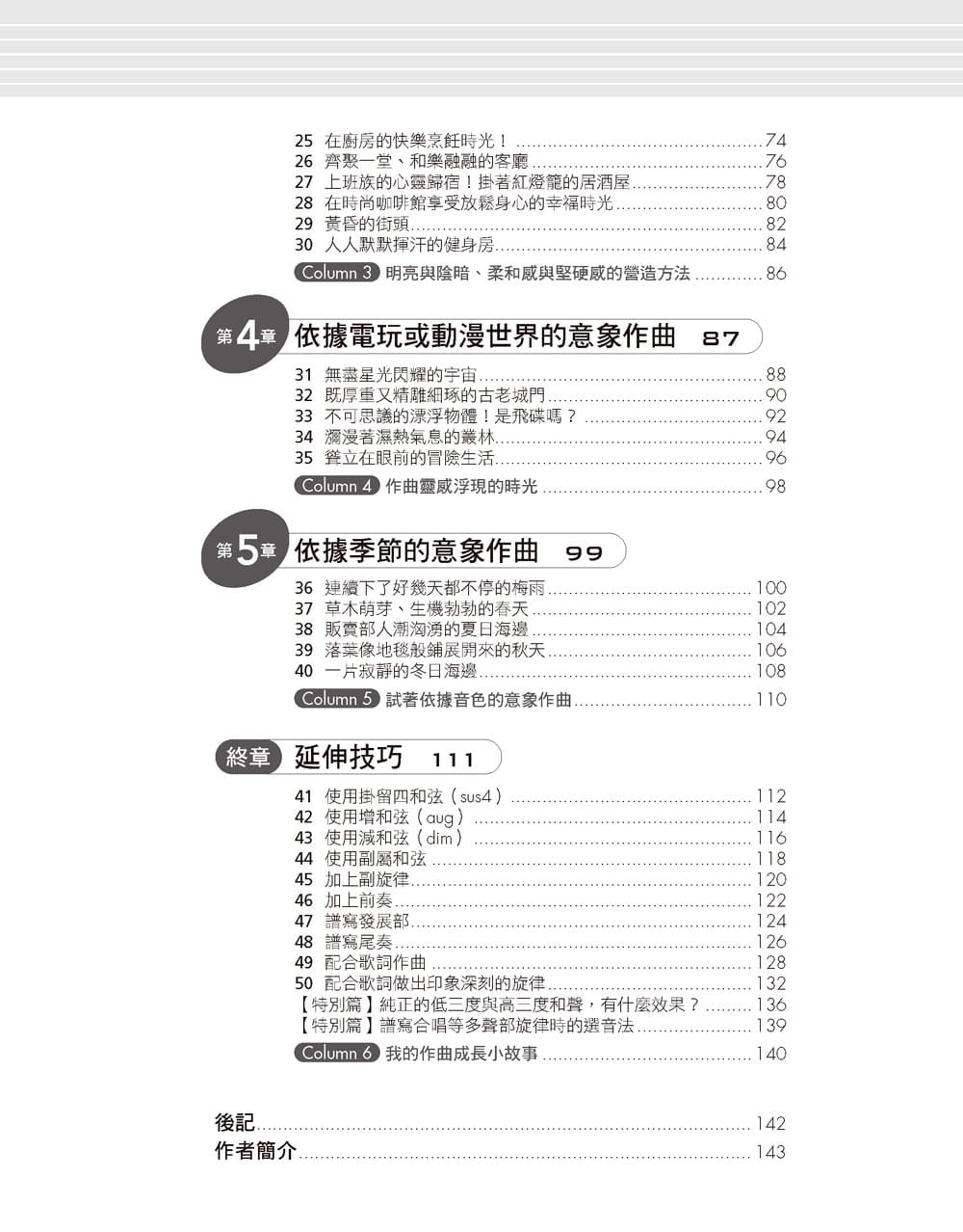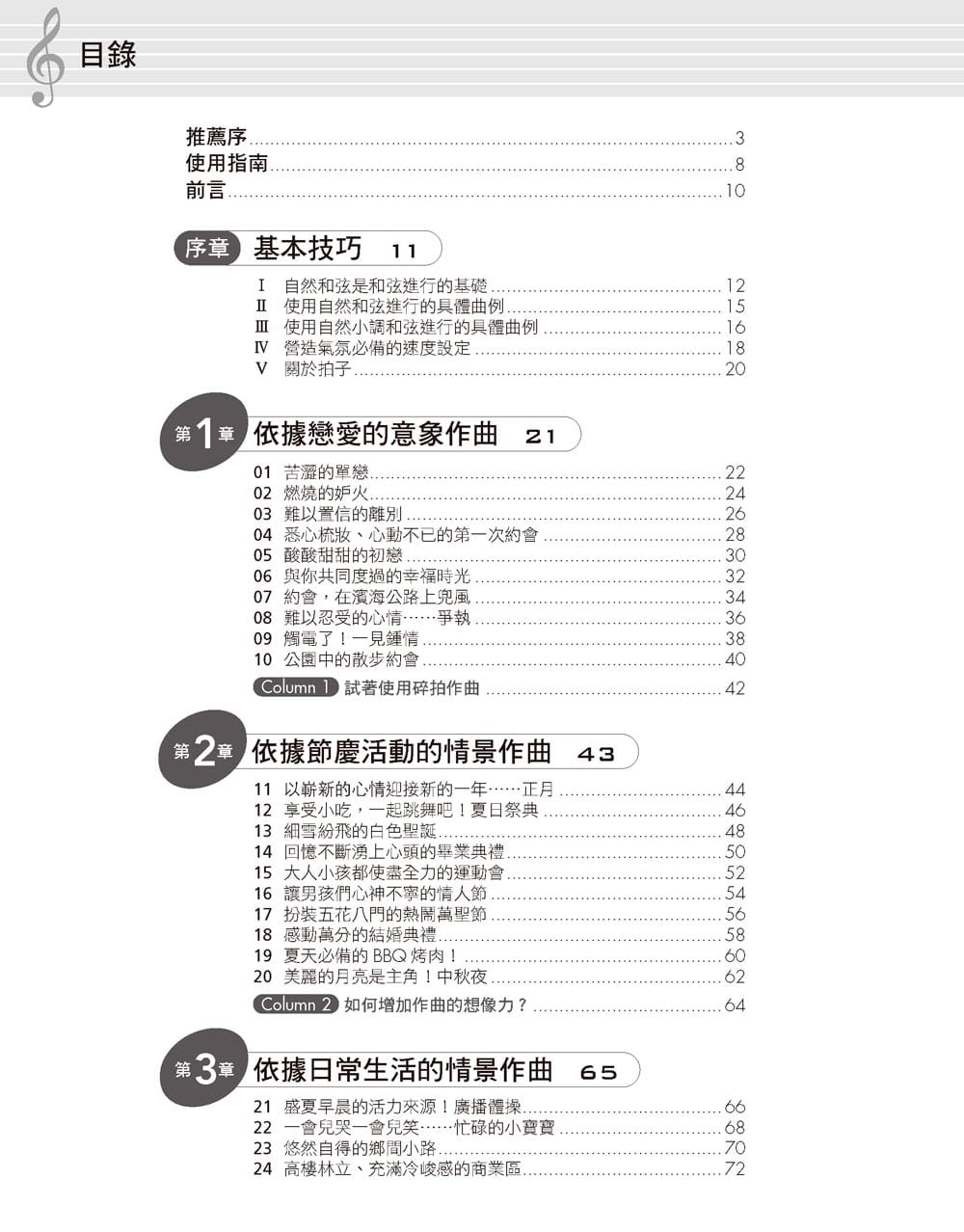 ●音樂技巧從基本到延伸,點→線→面完整構成樂曲層次