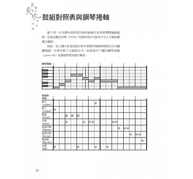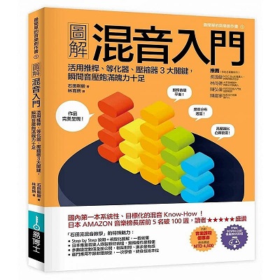 ●日本人氣編曲講座精華大集結: ⊙從單項基礎到整體合奏,4大樂器編曲原則全方位掌握 ⊙鼓組對照表+鋼琴卷軸+五線譜,譜例豐富好理解 ⊙概念圖解+要點彙整+音檔聆聽,多管齊下,學習最有效 ⊙技術本位最優先,使用軟體類型不受限 「單聽吉他樂句很棒!但整體搭配起來卻不出色……」 「真希望音樂一下立刻氣派十足,令人印象深刻!」 編曲有如穿搭的工夫,整體必須協調飽滿而不亂,層次鮮明有亮點,而且,有型有款! 如何打造樂曲的律動感?過門式樂句怎樣才能和主旋律相互輝映、又有特色?該如何安排各項樂器之間的關係和層次,才能讓彼此巧妙地搭配、整合? 現為日本專業音樂人、並舉辦人氣音樂講座的作者,以最普遍常見的流行樂團編制,針對鼓組、貝斯、吉他、鋼琴4大樂器,逐一解析各項要訣,提供你條理分明、井然有序的學習捷徑。打開本書,你將學會: ●「編曲的加-減-乘-除」應用方法 ⊙加法(加上充足的聲音) ⊙減法(去除不需要的聲音) ⊙乘法(透過聲音的組合來增強效果) ⊙除法(抑制其他聲音以凸顯某個聲音) ●華麗編曲的製作重點 ⊙明快節拍 -鼓組:中-低音域的重音、高音域的節奏 -貝斯:以根音和五度音為主 -吉他:配合基本律動進行刷奏 -鋼琴:只靠左手就做出基本律動 ⊙可哼唱樂句 -控制聚焦度的3大支柱:節奏-動向-聲音的使用方式 -間隙樂句:分為2種,以吉他和鋼琴為主 -背景樂句:以分解和弦為主 -鼓組過門:需考量音高的動向 ⊙樂團合奏 -綜效的強化:善用齊奏、合音、同一節奏,細節更完美 -優先性的確立:微調各部分的聚焦度次序,層次更分明●音樂人專業推薦 姚小民(旺福樂團主唱兼吉他手) 3R2(作曲家、編曲家、DJ) Frank(DigiLog聲響實驗室創辦人) Sam Lee(指北針音樂負責人、Apple官方認證Logic Pro講師、搖滾/爵士樂團bass手)●日本讀者實證推薦 -原本得透過長期進行樂曲分析才能學到的方法,在這本書中一次就能學到。尤其是PART2有關「聚焦度」的掌握方法非常好懂。適合已有作曲經驗、開始覺得需要「編曲」的人。 -我習慣同時進行作曲和編曲,覺得從本書最後的附錄開始讀也很好! -對新手當然很有幫助,對那些在錯誤中學習、想升級到中-上級的人來說同樣必備,有助於回到原點釐清編曲的基礎和本質!作者介紹 作者簡介 熊川浩孝 熊川ヒロタカ,Kumagawa Hirotaka 作曲家、編曲家兼音樂講師。2010年4月起以作曲家兼編曲家的身分開始音樂活動,替許多音樂人創作、編過各種類型的樂曲。本身參與編曲的Royz第9張混音單曲「LILIA」在Oricon單曲單週排行上曾獲得第7名。2014年加入了Rittor Music出版的《圖解混音入門》(石田剛毅著,中譯本由易博士出版社於2016年出版)一書教材曲「Liner Notes」的製作團隊。現在致力於活用自己作曲和編曲的經驗,透過音樂講座栽培後進。石田剛毅 石田ごうき,Gohky Ishida I / O MUSIC株式會社的董事長(代表取締役社長),也是作詞作曲家、編曲家和音樂教育講師,同時還擔任音樂界的專業顧問。平時使用Cubase系統製作音樂。曾任職於島村樂器小倉分店、廣播電台的音響及企劃業務部門。還住在鄉下時以自營音樂事業者的身分於2008年4月創業,透過CD製作和音樂教學等自立門戶。由於在客戶之間擁有極高的推薦率和回客率,因此穩定扎實地擴大業務。2010年春天,因想追求新的發展而單身赴東京,並僅以短短4個月的時間便快速將事業扶上軌道。2011年春天起為想成為「自營音樂事業者」的人設立了「如何成為自營音樂事業者」培訓課程,積極培育後進。2013年10月將工作室法人化,成立I / O MUSIC株式會社。2014年出版了第一本教材《圖解混音入門》(在日本由Rittor Music出版社出版,中譯本由易博士出版社於2016年出版)。獲得許多對於混音感到困擾的數位音樂創作者大力支持,銷售與回響都相當熱烈!譯者簡介 陳弘偉 Ernie Chen 音樂人。音樂啟蒙自Yamaha Electone三排式電子琴,熱愛日本歌曲。日本Osaka School of Music作編曲科系畢業後,續往英國Kent大學就讀Music Technology科。回台後加入Dyverse Studio音樂製作團隊,目前也致力於推廣數位音樂教育,為石田流混音課程講師。並有多年音樂相關日文翻譯、口譯經驗,如2016年擔任北城浩志大師班現場主持及課程口譯等。林育珊 重度音樂愛好者,現定居於東京。