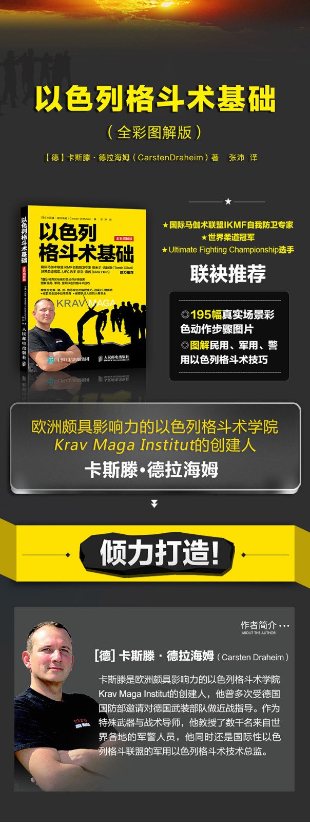 [德] 卡斯滕·德拉海姆(Carsten Draheim) 卡斯滕是歐洲頗具影響力的以色列格鬥術學院Krav Maga Institut的創建人,他曾多次受德國國防部邀請對德國武裝部隊做近戰指導。作為特殊武器與戰術導師,他教授了數千名來自世界各地的軍警人員,他同時還是國際性以色列格鬥聯盟的軍用以色列格鬥術技術總監。