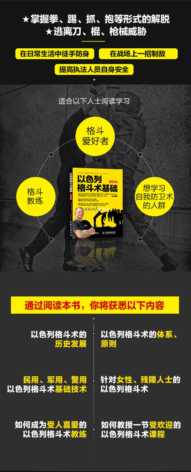 本書是一本以色列格鬥術Krav Maga實用自衛指南,*初以希伯來文寫成,曾經是嚴格限於以色列安全人員和精英成員的職業技法。開放傳播後迅速贏得世界各國專家的認可和普及,已被翻譯為14國語言出版。