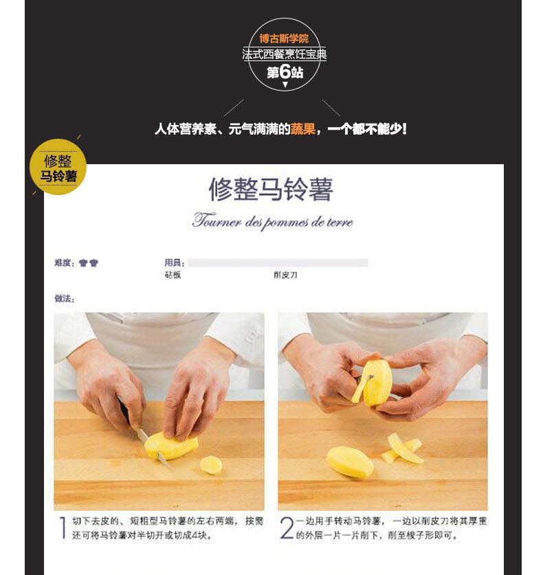 《博古斯學院法式西餐烹飪寶典》中的教學經驗將幫助烹飪愛好者探索法式烹飪技巧的秘訣,能向讀者朋友介紹這本厚重的書,我既高興又驕傲。因為,這本書就像資深主廚在位於法國埃庫裡(écully)的保羅·博古斯廚藝學院內教授學生烹飪課程一樣,且授課的主廚陣容還包括法國最佳手工業者獎(MOF)的獲得者。