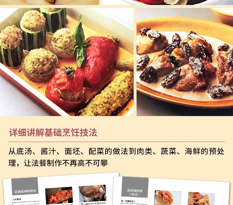 收錄原汁原味的經典法式料理,凝聚不同地區的風土特色與傳統技藝,多方面領略舌尖上的法國 詳細講解基礎烹飪技法,從底湯、醬汁、面坯、配菜的做法到肉類、蔬菜、海鮮的預處理,讓法餐製作不再高不可攀 高清美圖將成品和製作步驟清晰展現,真實還原每一道法式料理的本來面貌 全面了解不同地區各異的地理氣候、人文歷史、特色物產及飲食文化,足不出戶盡覽魅力法蘭西!