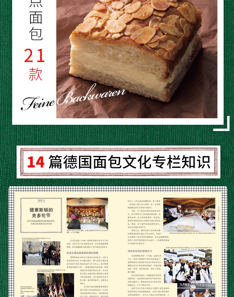 《德國麵包大全》是內容集德國麵包製作基礎知識、飲食文化、相關歷史背景及節慶風俗於一書的知識量相對大而全的實用類圖書。