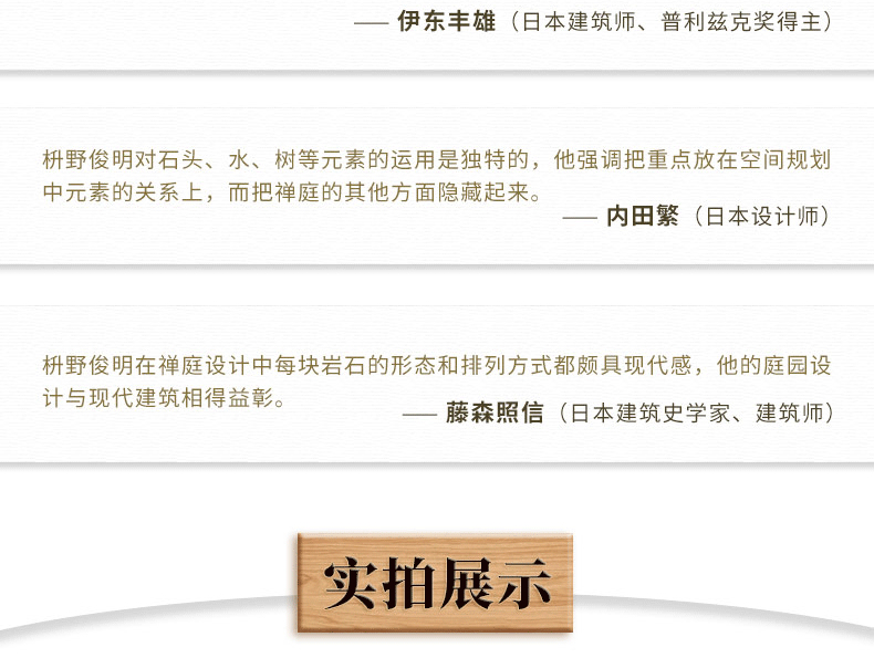 3內容詳實:除了深入分析枡野俊明近期的15個項目之外,本書還透徹地剖析了其設計思想,結合他與日本建築師滕森照信的對話,闡釋了設計的真諦以及兩位專業人士的工作方法與設計理念,直擊設計的本質。