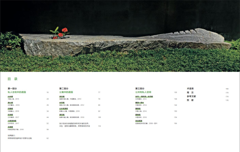 2項目時間新:不同於市面已有圖書,本書收錄了枡野俊明近期的景觀作品,包括私人住宅庭院、公寓中的庭院和公共空間庭院三大板塊。 由學者米拉•洛克分析闡述,圖文並茂地展示了近400張高清圖片。 每個項目配以實景、平面圖、分析圖等,並相應提煉出15條設計原則,有利於景觀設計師學習設計要點,啟發設計靈感。