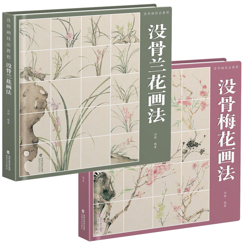 沒骨梅花畫法+沒骨蘭花畫法(共2冊) 大開本 活頁裝幀 國畫梅蘭竹菊傳統技法教學
