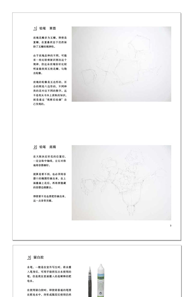 本書共分6章,從如何觀察事物的整體形態開始,以常見的花卉形態為切入點,點明觀察的要點和訣竅。繼而擴展開來,解析重疊角度的觀察方法,並由此深入講解常見事物的構成規律,以及在實際繪畫中結合目測、運用規律的方法。 *後講解了大幅作品的創作過程。本書旨在幫你愛上素描,更加自由地描繪水彩,享受更多的繪畫樂趣。