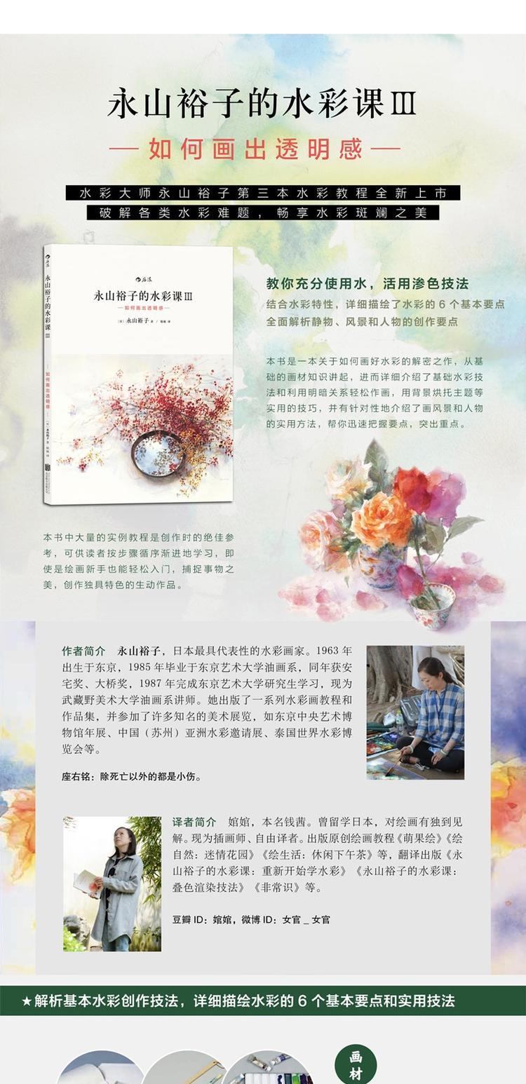 永山裕子的水彩課:重新開始學水彩+疊色渲染技法+如何畫出透明感+從素描到水彩(共4冊)