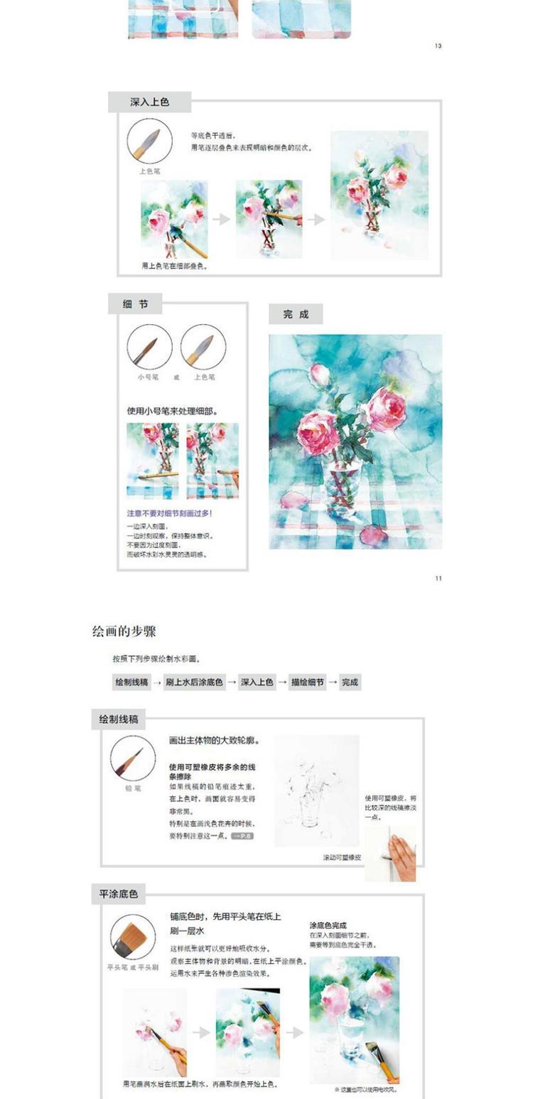 實物圖片結合作品圖片,分步圖解,展示了水彩大師永山裕子的水彩創作過程及她對水彩畫創作獨到的心得感悟。本書解析花卉、風景等主題的水彩畫創作的要點和技巧,讓水彩學習者在輕鬆愉悅的學習過程中,不知不覺地提升觀察力、概括力和描繪力,激活潛在的藝術才能,從而在日常的生活中發現更多美的素材,創作更多美的作品!