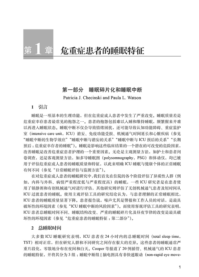 1章 重症病患的睡眠特徵 1