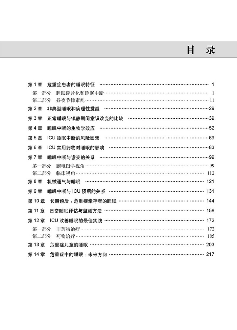 1953年,世界首個重症監護室創立於哥本哈根,由此開創了重症醫學領域的發展。 1920年代後期腦電圖的發展加速了睡眠醫學的發展。然而,直到本世紀初,睡眠發展才逐漸擴展到重症醫學領域。在過去的20年中,研究表明,睡眠障礙既是重症的合併症,也給ICU重症患者帶來不良影響,包括譫妄風險升高、對疼痛敏感性增加、術後恢復延遲、ICU住院時間延長、ICU後認知能力惡化、ICU生存率降低等。因此,如何改善ICU重症患者的睡眠障礙、改善病人預後引起ICU醫師的關注。 2018年8月,美國重症醫學會(SCCM) 次將ICU睡眠管理編入ICU 內成人病患疼痛、 躁動/鎮靜、譫妄、煞車以及睡眠中斷的管理指南(PADIS)。本書總結了當前有關危重病和康復期間睡眠相關知識,分章節討論了危重症患者睡眠特徵、非典型睡眠和病理性覺醒、正常睡眠與鎮靜期間意識改變的比較、睡眠中斷的生物學影響、ICU睡眠中斷的危險因素、常見ICU藥物對睡眠的影響、睡眠中斷及其與譫妄策略、ICU結局的關係、機械通氣和常見ICU藥物對睡眠的影響、睡眠中斷及其與譫妄等策略、ICU人群的關係、機械通氣和常見ICU藥物監測、睡眠中斷及其與譫妄等策略改善本書由睡眠醫學及重症領域的專家撰寫,包括重症監護醫師、睡眠專業醫師、護理師、醫師助理、藥劑師及呼吸治療師等。是幫助各級醫學專業技術人員對ICU重症病患睡眠生理學、睡眠評估管理、及ICU護理指導的綜合指南。