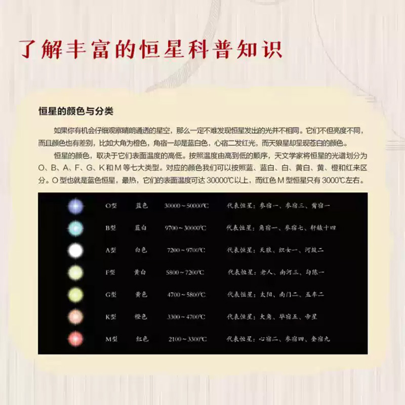 本書還在陳一得先生創作的「步天規」基礎之上,重新創制了新版步天規,讀者可以根據觀測日期和時刻進行測算,使用步天規觀測星空,引導自己認星識星,具有很大的研究價值。