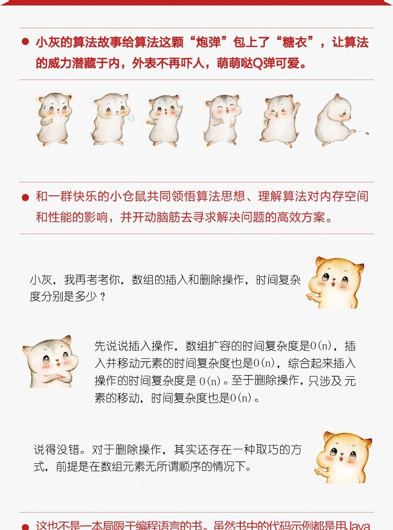 "小灰的算法故事給算法這顆“砲彈”包上了“糖衣”,讓算法的威力潛藏於內,外表不再嚇人,萌萌噠Q彈可愛。 從基本數據結構,到各類排序算法,再到面試算法,再到職場應用,書中的主角小灰和大黃帶領大家逐個破解。 和一群快樂的小倉鼠共同領悟算法思想、理解算法對內存空間和性能的影響,並開動腦筋去尋求解決問題的尚佳方案。 "