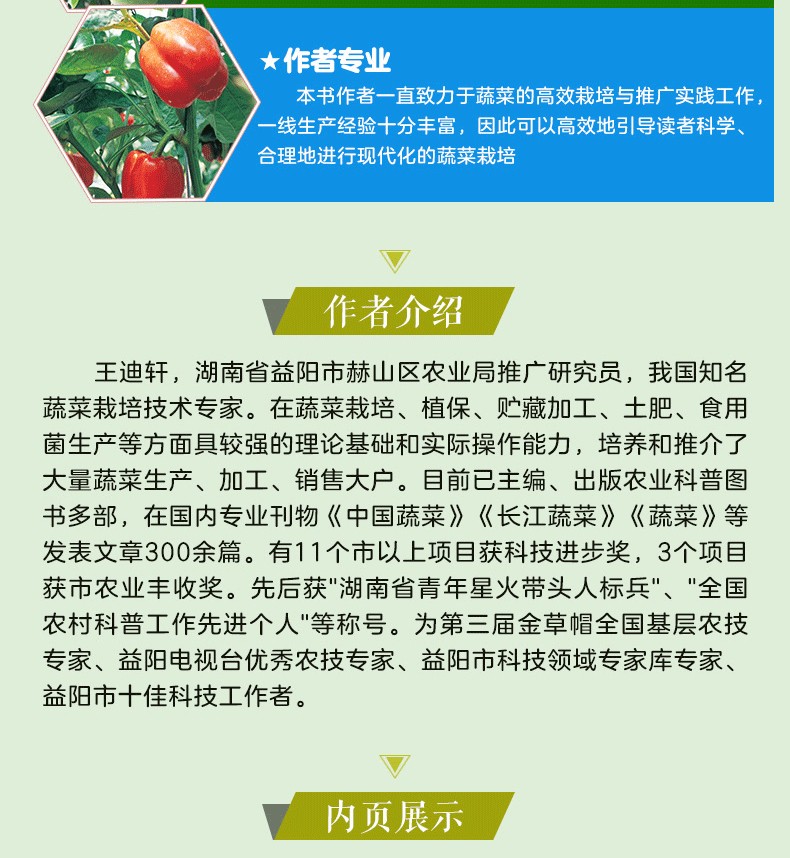 本書根據18種主要蔬菜的發展形勢,把現代元素融入育苗和栽培技術中,詳解蔬菜生產中的關鍵技術要點,圖解當前蔬菜的主要病蟲害,對促進現代蔬菜栽培技術的發展有一定的意義。本書通俗易懂,圖文並茂,適於蔬菜合作社、蔬菜公司、蔬菜協會、家庭農場、廣大菜農等閱讀參考,以對蔬菜生產進行規範化、程式化管理。