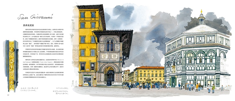 這是一本圖文結合,生動具體,探訪佛羅倫斯的完美指南。從教堂到博物館,從花園到宮殿,從廣場到蜿蜒小徑……150餘幅精美水彩展現佛羅倫斯的名勝古蹟與市井風貌;從人倫到宗教、從禁錮到變革、從壓抑到復興……講述佛羅倫斯的榮耀與衰亡。身未動心已遠,字裡行間跨越千年,《佛羅倫斯水彩筆記》帶你領略這座世間的天堂和心靈的避護所。