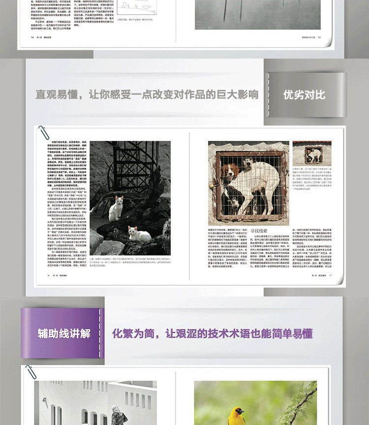 本書共7章,從聯想美、抽像美、對比美、均衡美、組照美、境界美、藝術美等方面進行了分析和論述。本書提出了許多實用的攝影美學方法,如錯雜抽象、視覺變異、視覺恆常、組照理論、格式塔理論、軟硬色、小秤砣、逆追隨、移情理論、考夫卡理論、走特別理論等,為攝影美學提供了新的內容,進一步豐富了攝影美學的技法庫。