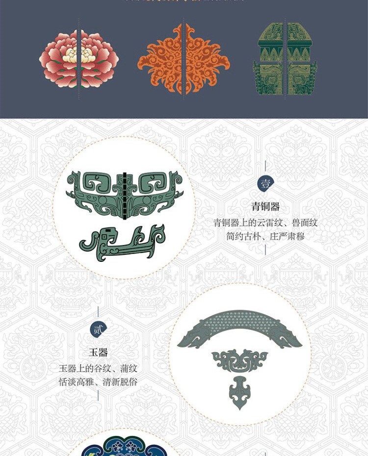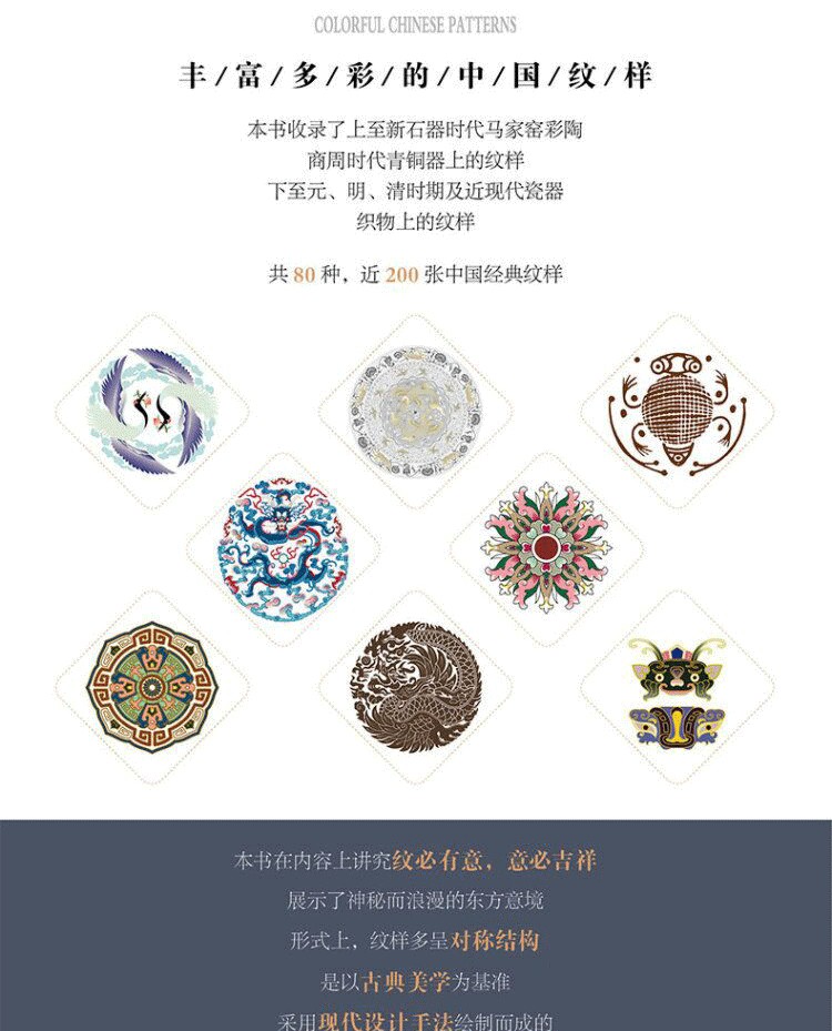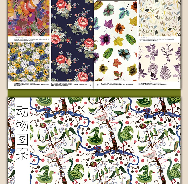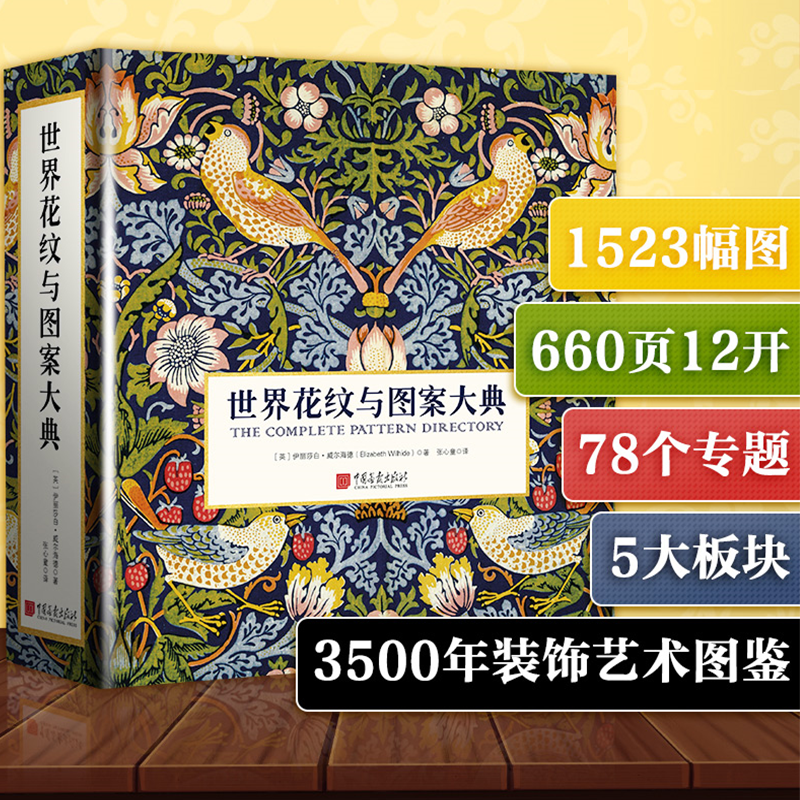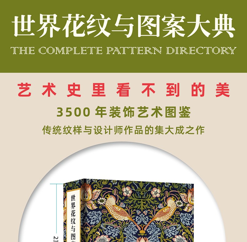 《世界花紋與圖案大典》收錄古今裝飾紋樣1500例,涵蓋東西方歷史上的各種裝飾風格,分為植物圖案、動物圖案、幾何圖案、圖畫和抽像圖案五大類,