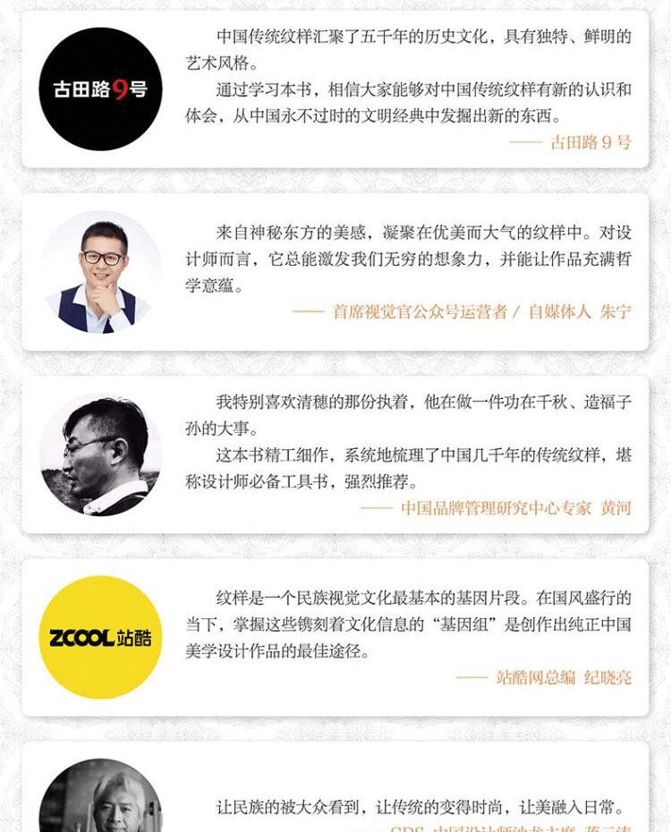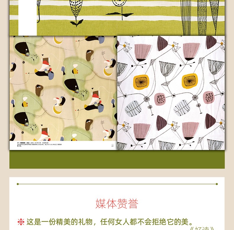 所有圖案標註設計者、年代等基本信息,配以文字介紹。書中還用78個圖文並茂的專題重點介紹了威廉·莫里斯、膽小野獸等設計師,紮染、鑲木等藝術,