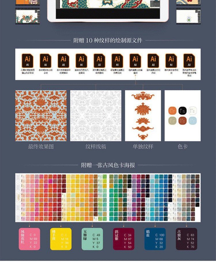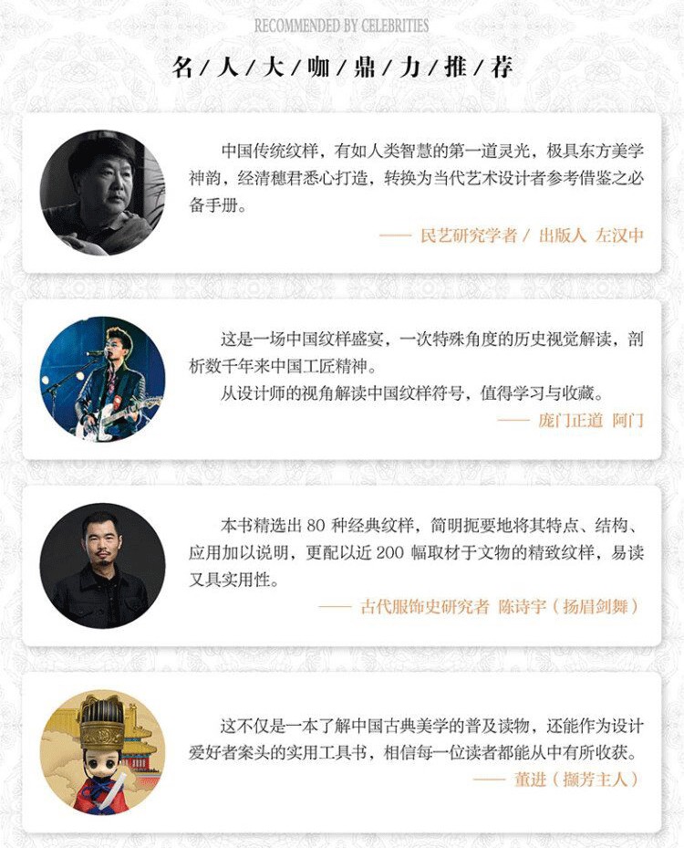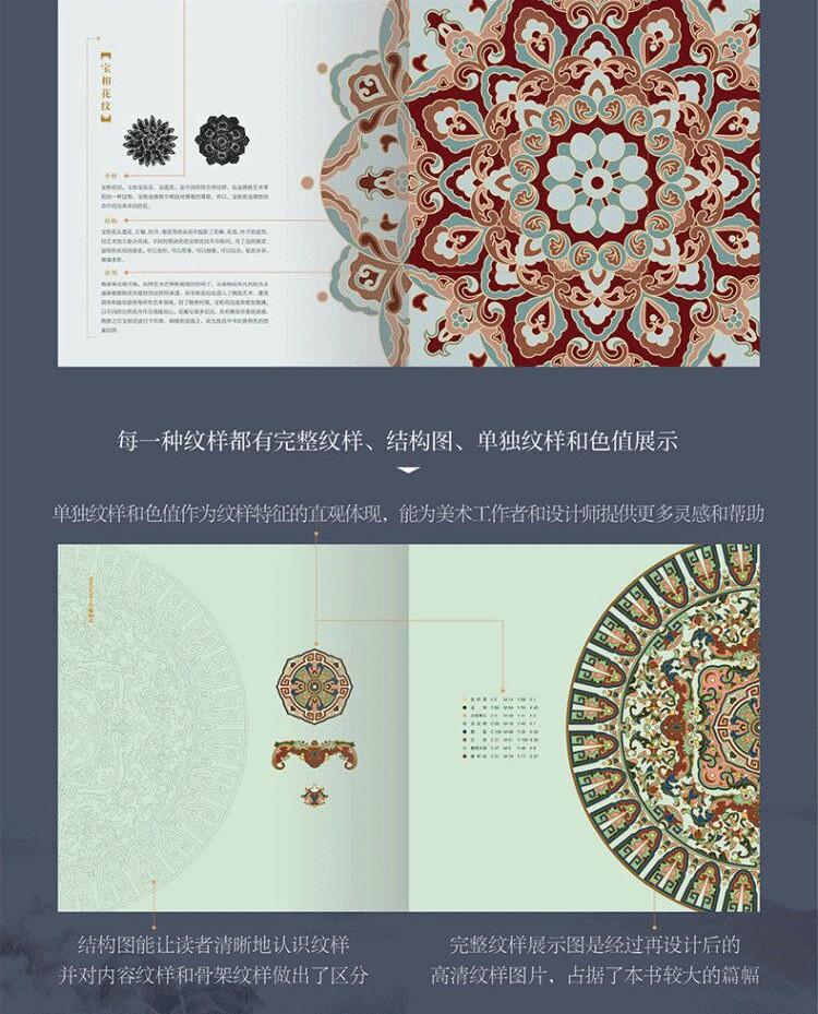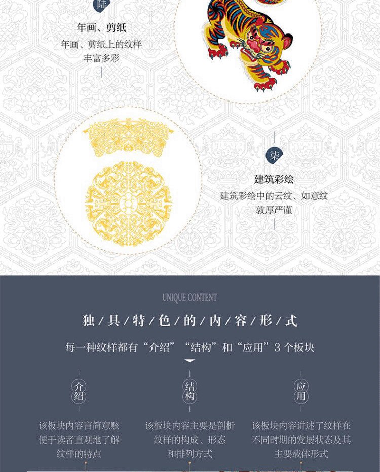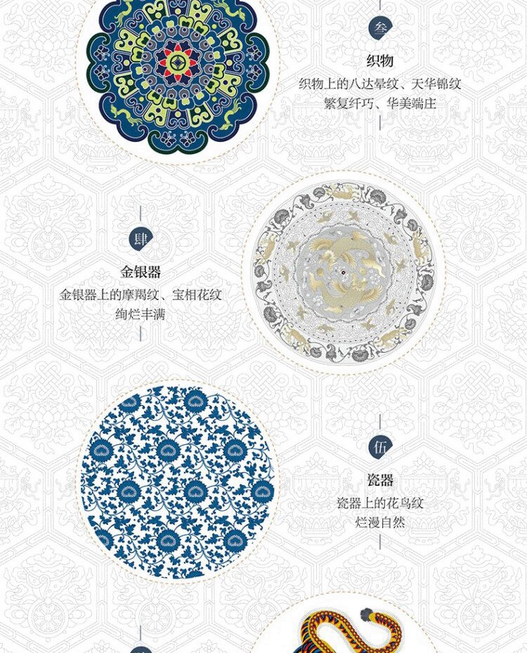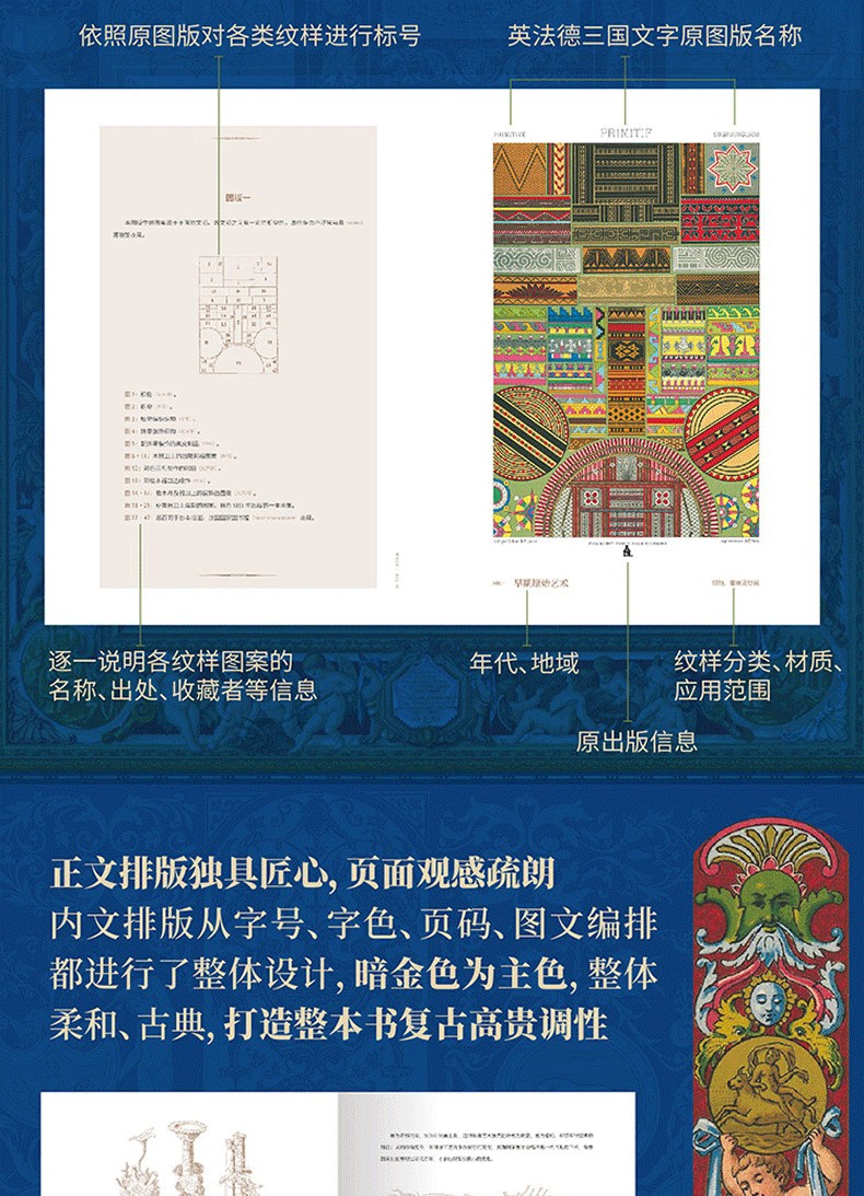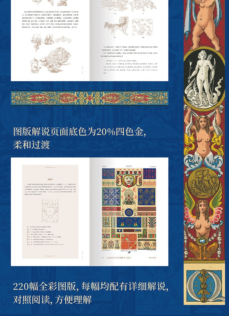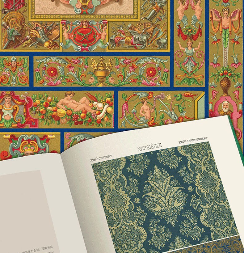 景展現了19世紀末之前世界各地、各時期用於建築、室內裝飾、家具、服裝、配飾、手抄本、兵器等領域的彩色紋飾圖案及裝飾藝術。相信本書會為裝飾藝術家
