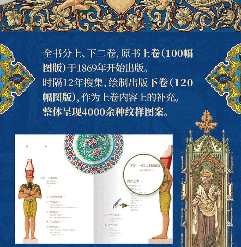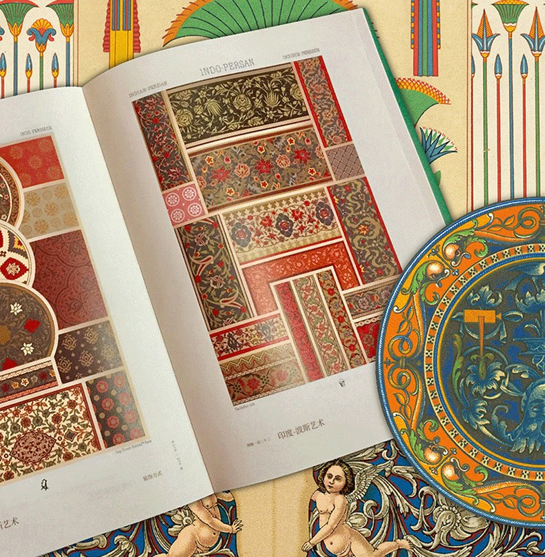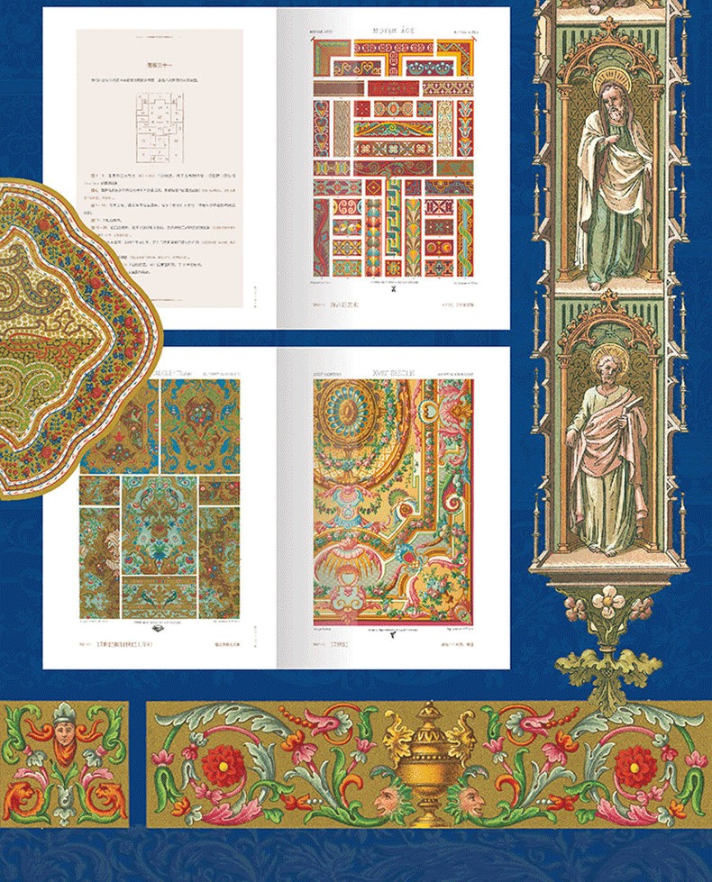 完成,收錄100幅彩色圖版,涵蓋2000餘種紋飾圖案; 二部於1885年開始出版,作為 部的補充,收錄120幅全新彩色紋飾圖版。圖版中的圖案均按照原