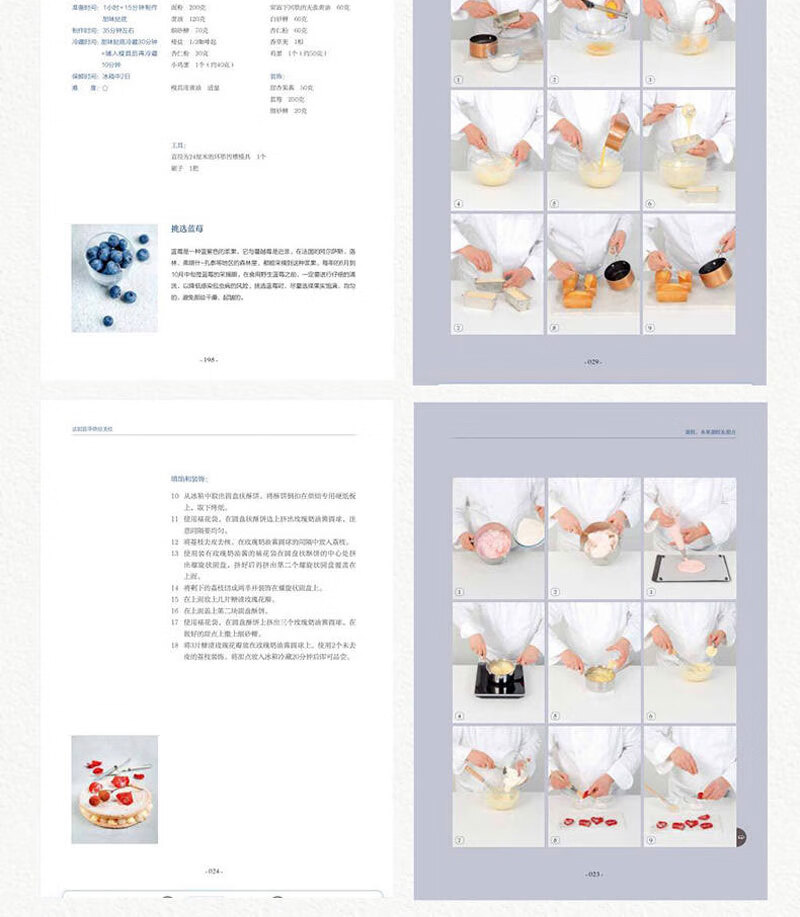 書中甜品突出法國藍帶廚藝學院特有的精緻裝飾和出眾技藝,單獨列出的參考部分則涵蓋製作麵糊、蛋白霜、沙司,以及加工水果、巧克力調溫、蛋糕裱花等所有基本技法。