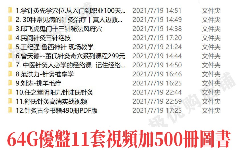 64G針灸教學視頻u盤中醫穴位經絡教程書籍鬼門十三針挑羊毛疔課程